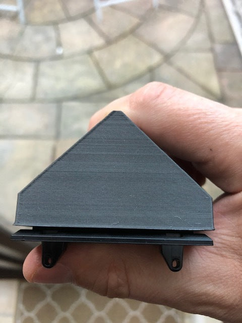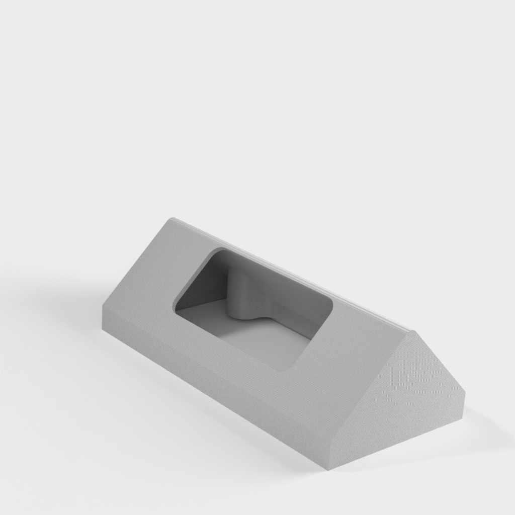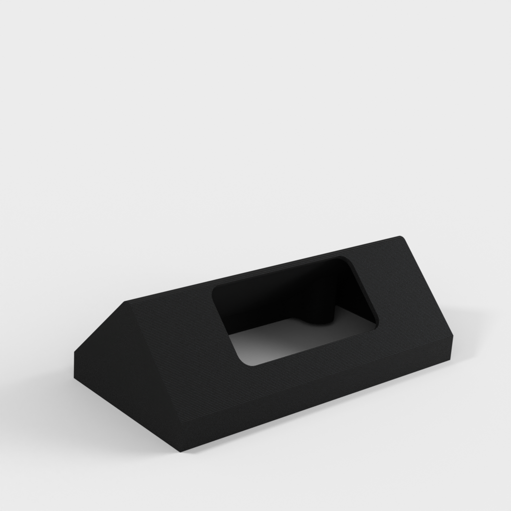 Der er et sidehul til kabelefterførsel. Produktfotoet viser printet af "877_ring_v2_corner_mount v6.stl", som har en lille plads omkring kanterne på grund af beslagets skrå kant.