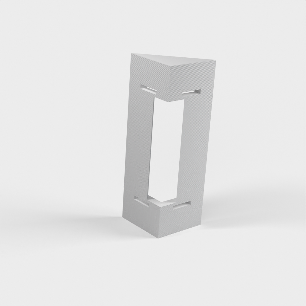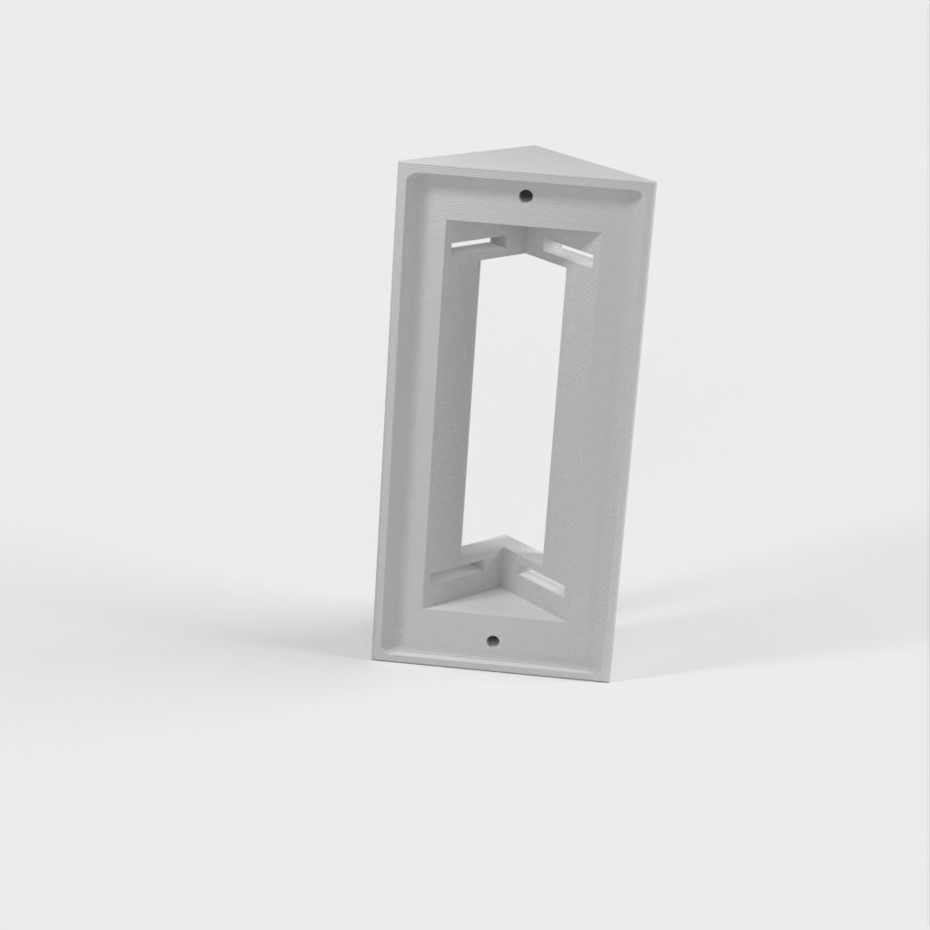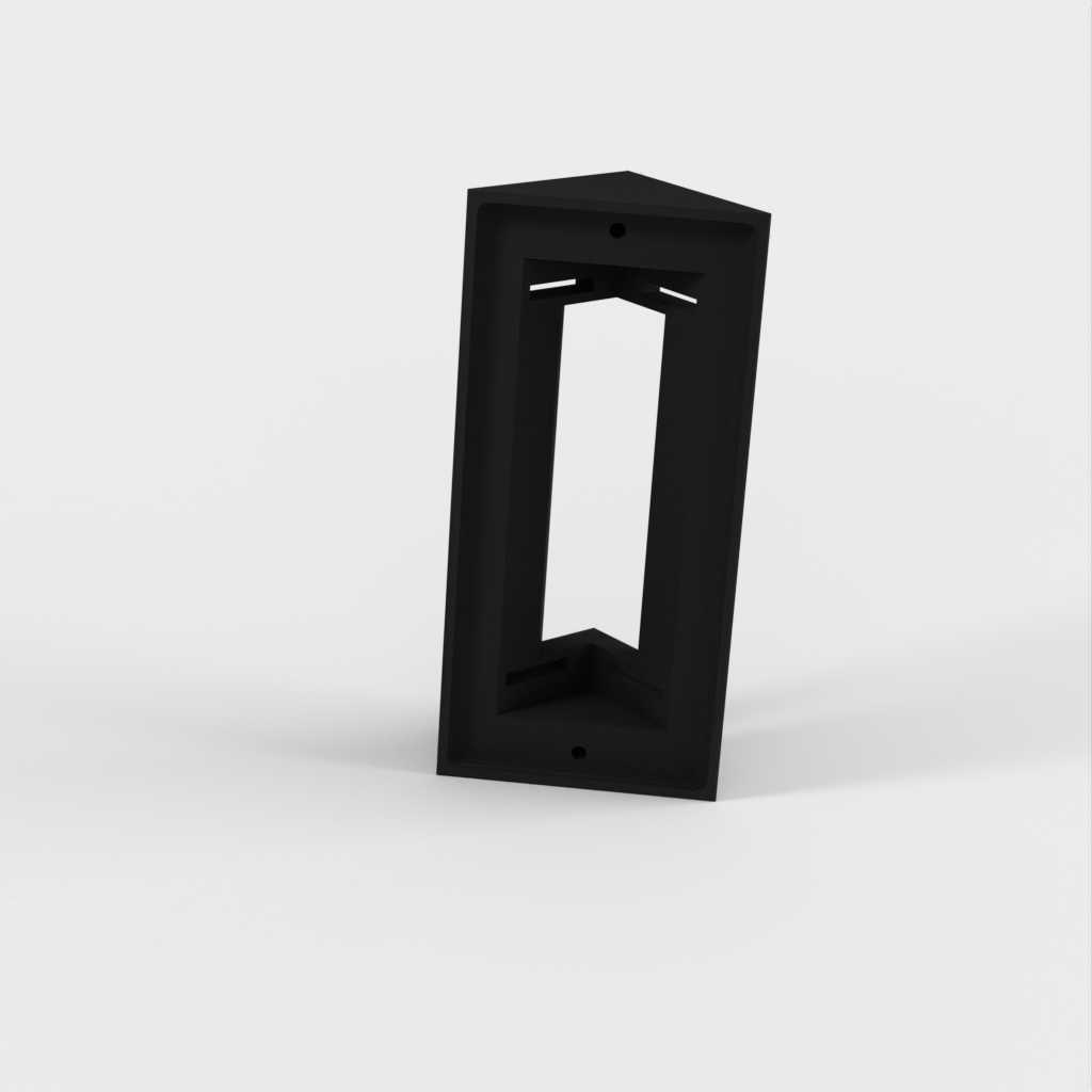 Dette er en beslag til Ring Video Doorbell Wired 2021-udgivelse. Beslaget gør det muligt at montere dørklokken i et hjørne. Beslaget har også en udskæring, så dørklokken kan hvile flugt mod beslaget i stedet for at efterlade en lille kløft rundt om kanterne. Denne design har en afstand på 68mm mellem beslagets monteringshuller, hvilket betyder at dine monteringsskruer i din mursten / hjemmeside skal være 68mm fra hinanden.