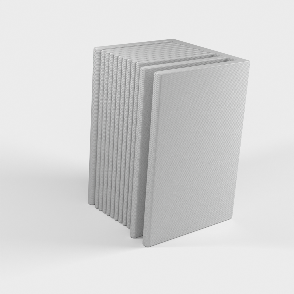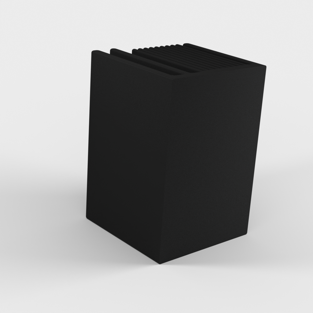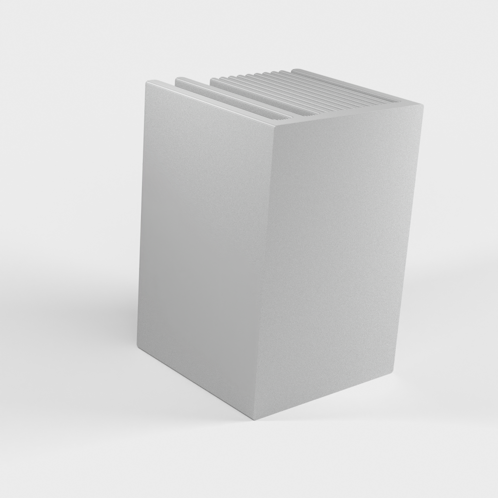 Denne skærebrætsorganizer tilbyder en praktisk løsning til at holde dit køkken pænt og organiseret. Den er designet specifikt til IKEA Finfordela fleksible skærebrætter og muliggør vertikal opbevaring, hvilket effektivt frigør plads på køkkenbordet. Med præcist designede riller er der plads til otte 2 mm tykke skærebrætter, to 12 mm tykke skærebrætter og et enkelt 5 mm tykt skærebræt. Dette design sikrer, at dine skærebrætter er nemme at komme til, når du skal bruge dem, samtidig med at de er ryddeligt gemt væk.