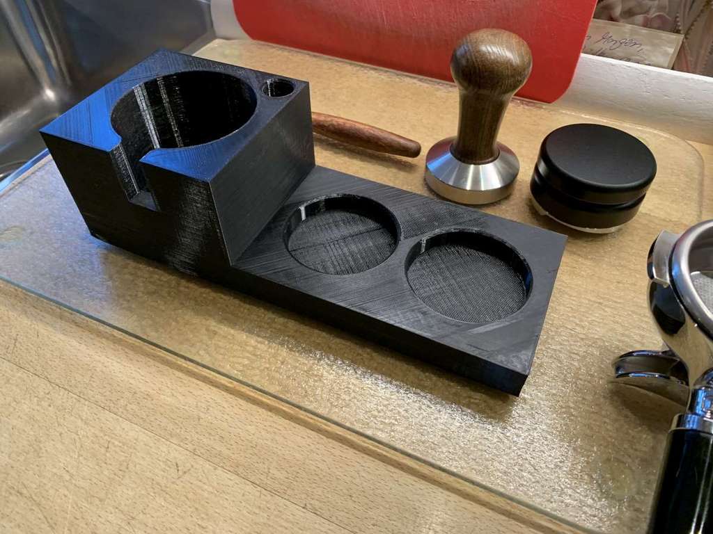 Dette er en komplet tampestation, designet specifikt til ECM Synchronika espressomaskiner med E61 gruppehoved. Stationen tilbyder organiseret opbevaring for dit udstyr, herunder plads til en 58,5 mm tamper, et distributionsværktøj og en børste. Den er et praktisk redskab til den daglige kaffetilberedning, der hjælper med at strømline processen, når du laver espresso eller cappuccino. Stationens lette konstruktion gør den nem at håndtere, og ved at placere dine værktøjer tilbage på plads kan du tilføre ekstra vægt og derved øge stabiliteten under brug. For at sikre et fast greb på arbejdsfladen er bunden udstyret med skumgummi, som modvirker glidning.