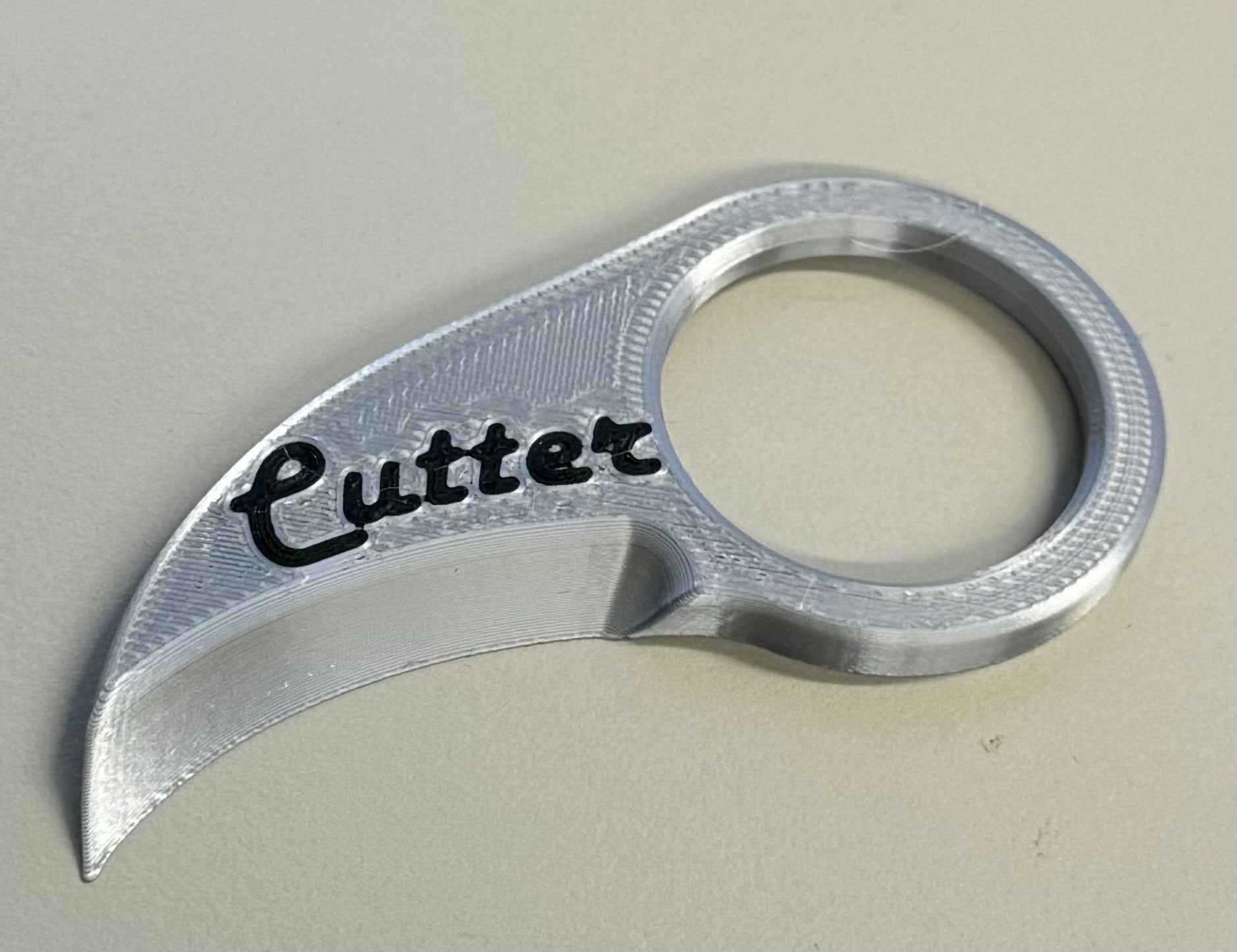 Box Cutter/Knife 3000 er et praktisk og funktionelt værktøj designet til let at åbne kasser, der er forseglet med tape. Den slanke form gør det nemt at håndtere denne cutter i forskellige opgaver, fra at åbne pakker til generel skæring. Cutterens minimalistiske design, som inkluderer teksten "cutter" på toppen, giver mulighed for både ensfarvet og tofarvet tilpasning, hvilket gør det til en personlig og stilfuld tilføjelse til dit værktøj.