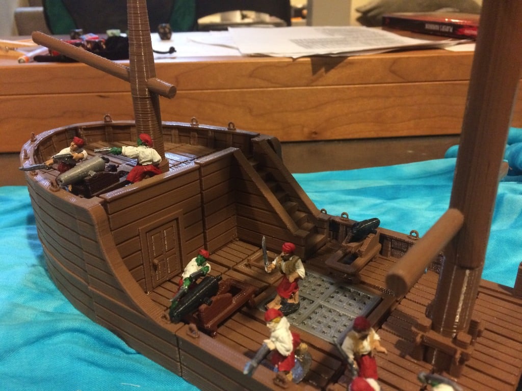 Sættet indeholder specialdesignede fliser og støtteelementer, der gør det muligt at opbygge både forkasteller og agterkasteller med realistiske højdeforskelle. Indvendige vægge, døre og trapper kan nemt integreres, hvilket skaber en fordybende oplevelse for spillere, der navigerer på skibets forskellige dæk.