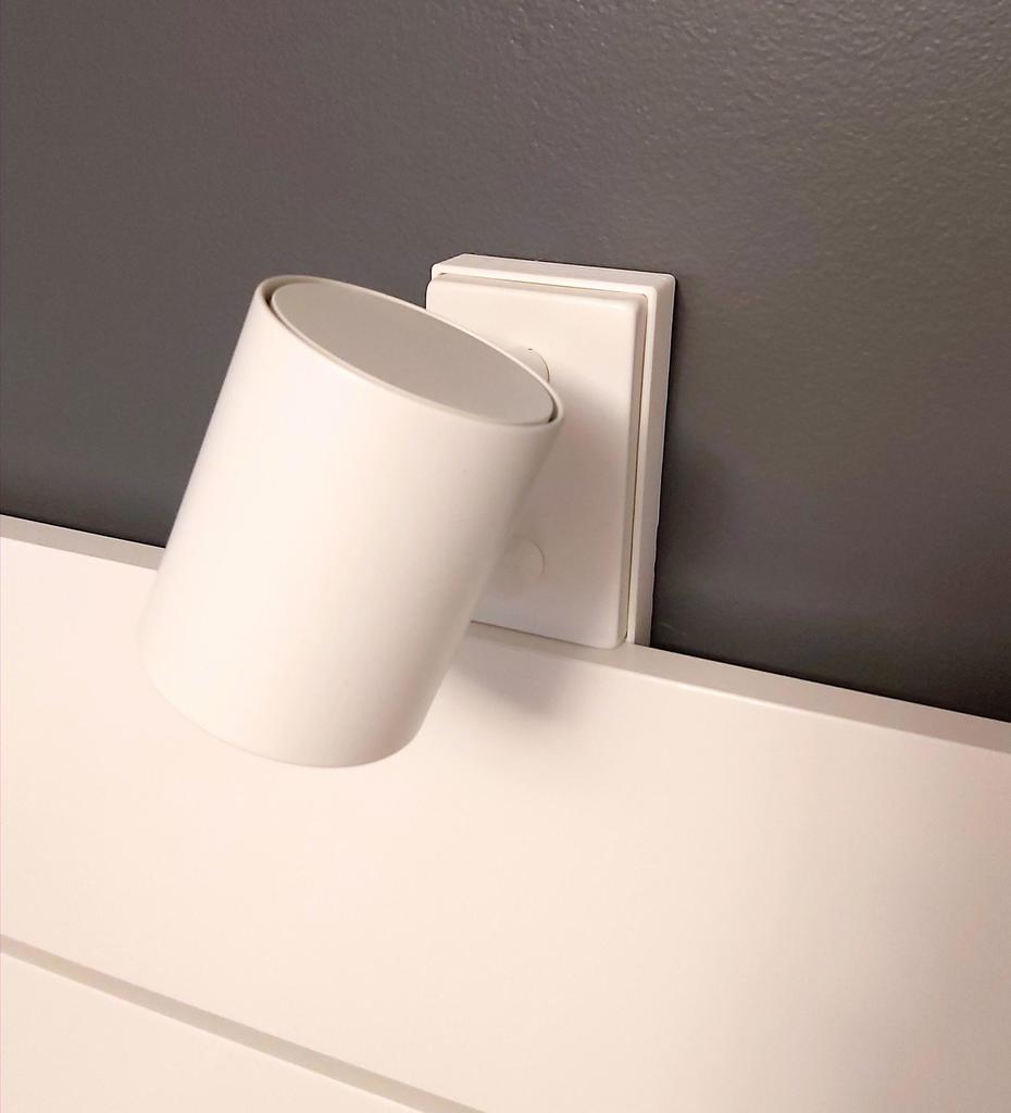 Dette er en simpel friktionsmontering til Ikea's Nymane lampe, der kan fastgøres på deres Nordli hovedgærde. Du kan bruge en smule dobbeltklæbende tape, hvis lampen ikke passer tæt ind i huset. Derefter skubber du det bare mellem hovedgærdet og væggen. Vi bruger to af dem, og de holder sig fint på plads. Jeg havde planlagt at gøre lidt mere, men jeg printede det for at teste pasformen, og alt fungerede perfekt, så jeg printede bare en anden en og kaldte projektet færdigt.