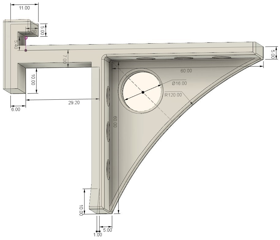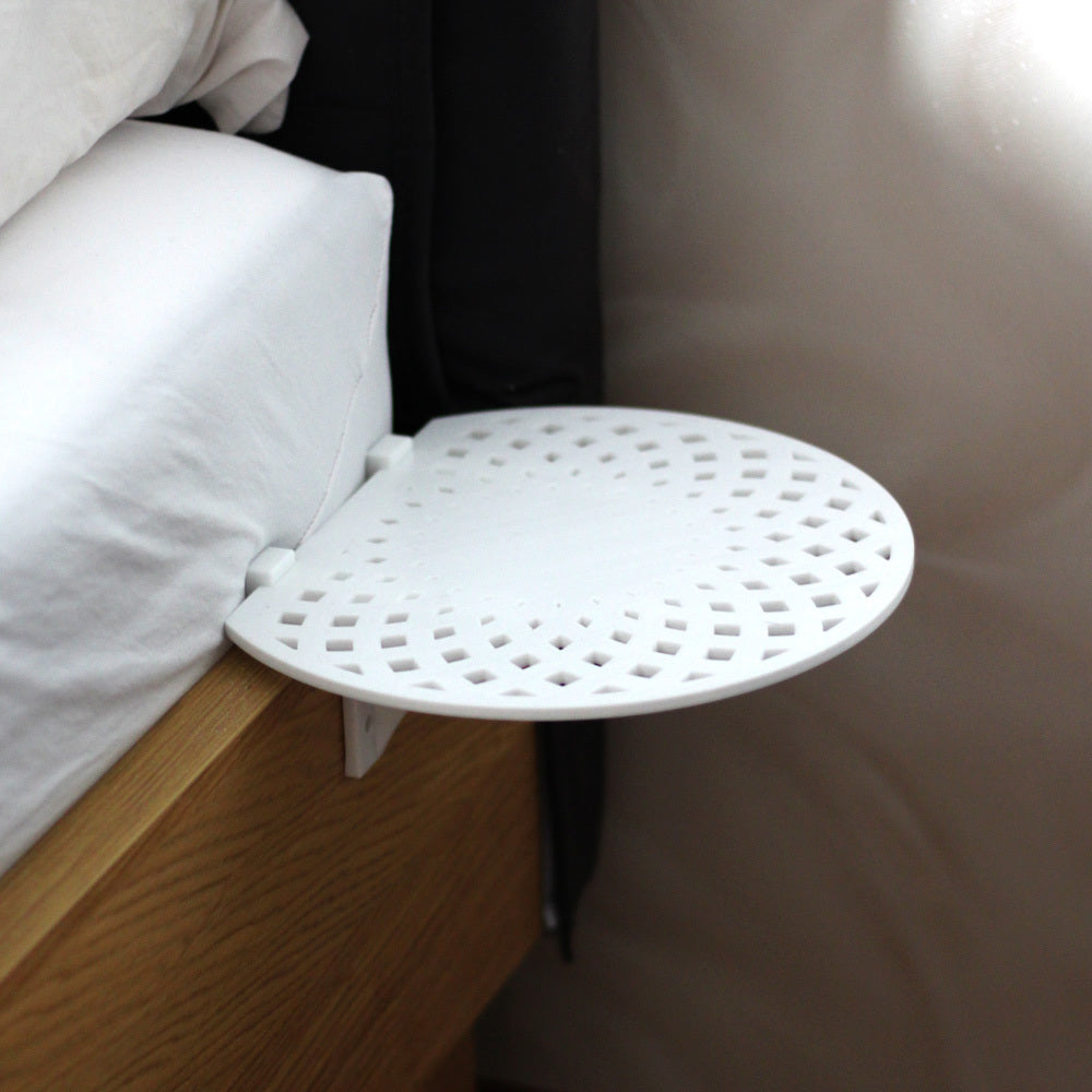 Dette er en hylde til montering på en IKEA seng med en sidetykkelse på 29mm. Hylden består af tre dele: to monteringer og en plade. Du kan selv vælge hvilket materiale pladen skal være lavet af, for eksempel krydsfiner skåret med laser. Pladen har en tykkelse på 5mm og er 260x210 mm i størrelse, men dens størrelse kan tilpasses efter behov. Du kan printe spejlvendt, hvis du har behov for at montere hylden på den anden side. Link til designfilen: https://a360.co/2Syop3N