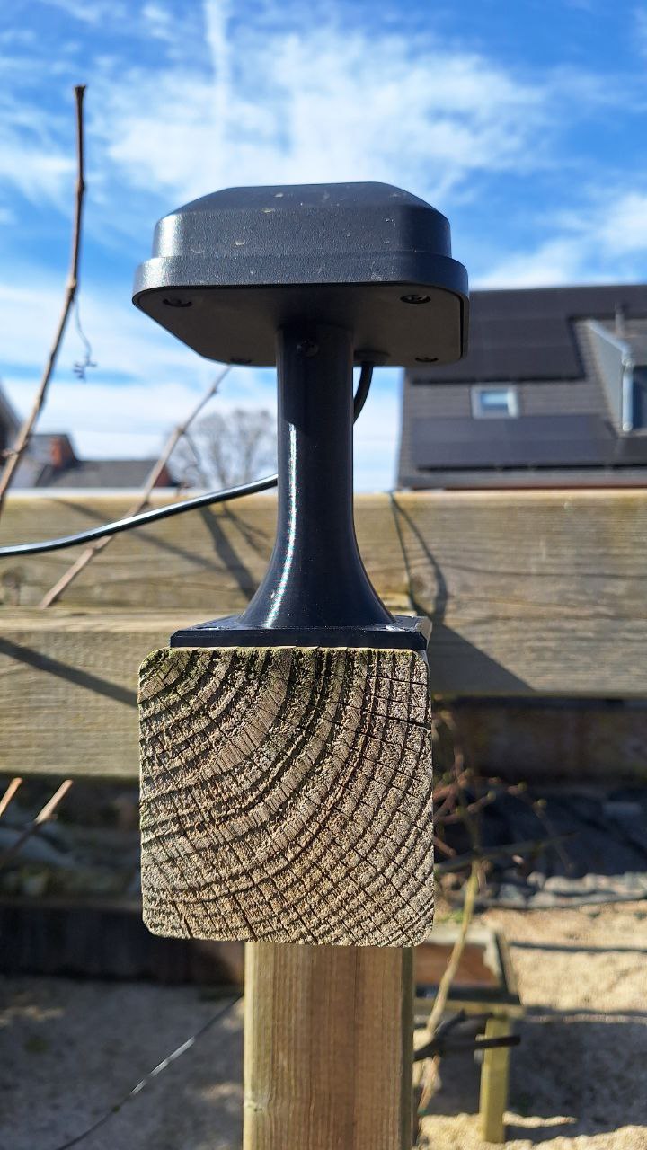 GPS Antenne mount til Segway Navimow. Dette mount er designet til at passe på en standard 90mm træbjælke, så du nemt kan montere din Navimow GPS på toppen af din pergola eller lignende struktur i baghaven.