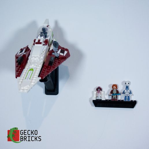 Dette justerbare vægbeslag gør det muligt at udstille din Star Wars Starfighter i forskellige vinkler. Beslaget er designet til nem montering og hurtig fjernelse af modellen. Der medfølger en separat holder til minifigurer, som monteres sikkert og skånsomt med en 3M-strip.