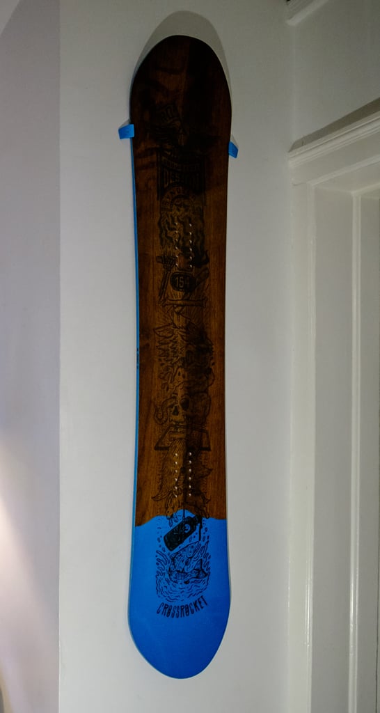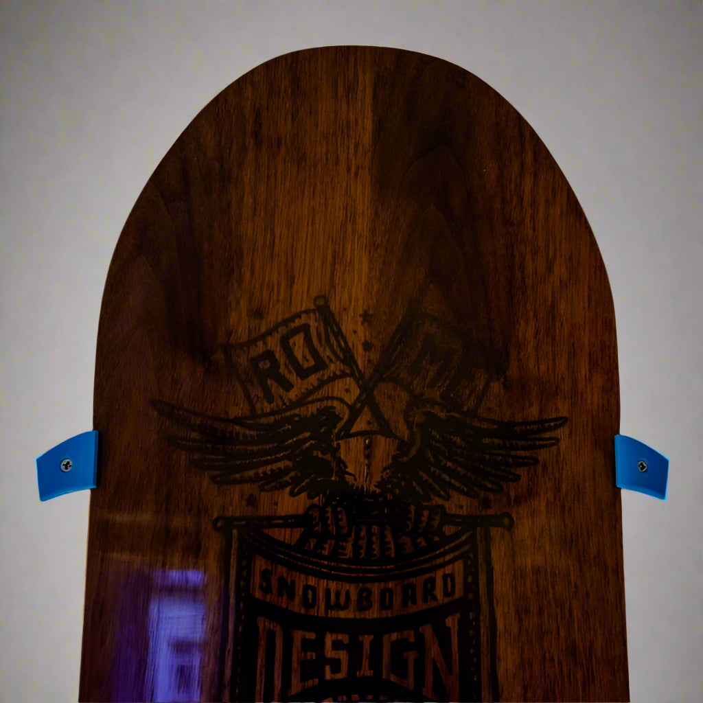 En samling af vertikale vægbeslag til snowboards. Kommer i 2 versioner, en der indeholder et 2mm mellemrum fra væggen for at undgå at boardet rører og ridser den, og et sæt uden. 4 mm bred og er lavet til træskruehoveder med en diameter på 8 mm.