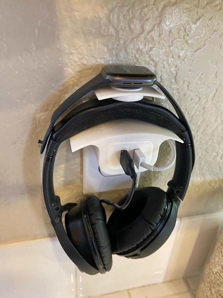 Stikkontaktdæksel med Integreret Opladningsholder til Apple Watch og Hovedtelefoner