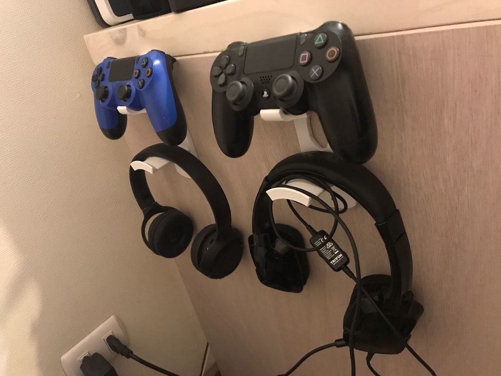 Denne vægholder tilbyder en smart og pladsbesparende måde at opbevare dit gaming-udstyr på. Den er designet til at holde din PS4-controller og dine hovedtelefoner sikkert og overskueligt, hvilket bidrager til et mere organiseret og stilrent gaming-område. Med denne holder kan du nemt og hurtigt få adgang til dit udstyr, uanset om det er din PS4-controller eller dit foretrukne sæt hovedtelefoner. Det er et praktisk tilbehør for enhver gamer, der ønsker at optimere sin plads og samtidig beskytte sit Sony PS4-udstyr.