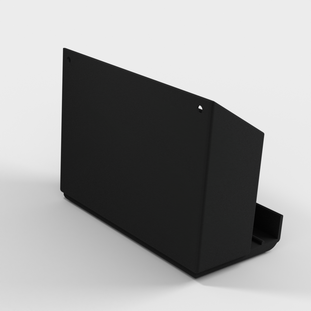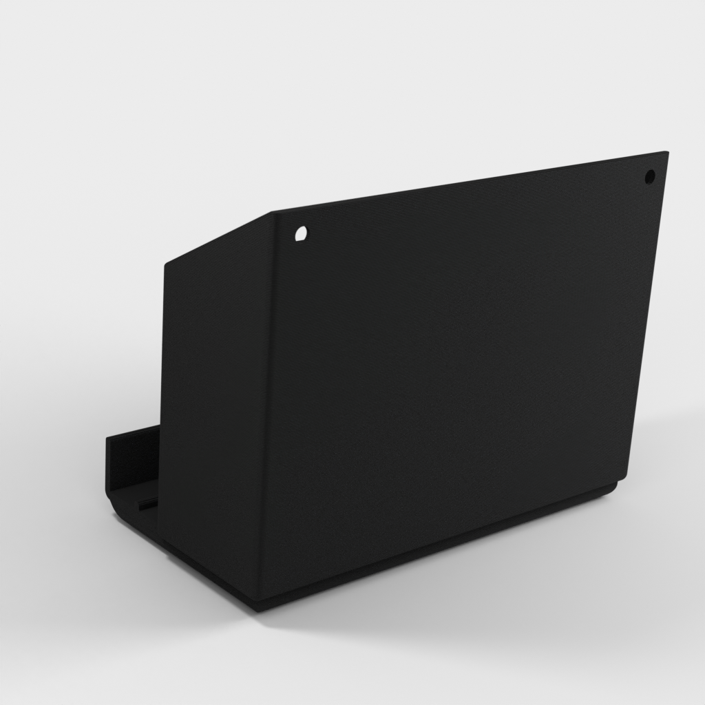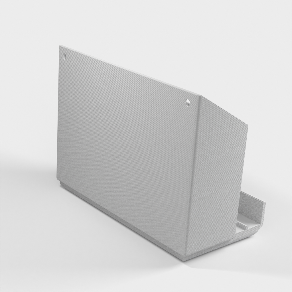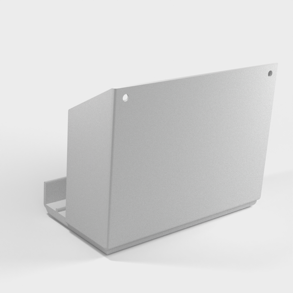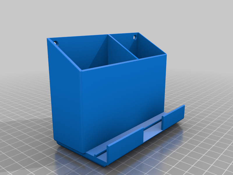 Vægmonteret fjernstyringsholder med plads til to fjernbetjeninger og en mobiltelefon. Den største holder er ideel til AC-controllere og den mindre er perfekt til TV-controllere. Produktet tilbyder også en handy holder på forsiden til din telefon. Desuden inkluderer dette produkt en Freecad-fil, hvilket gør det nemt at ændre positionen af skillelinjen eller fuldstændigt fjerne den.