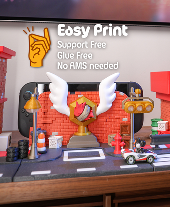 Denne Podium Pit Stop dock er designet til din Nintendo Switch 2 konsol og kombinerer funktionalitet med et unikt racer-inspireret design fra Turbo District kollektionen. Den sikrer, at alle porte og ventilation forbliver fuldt tilgængelige. Modellen samles let uden brug af lim og fungerer også som en stilfuld holder.