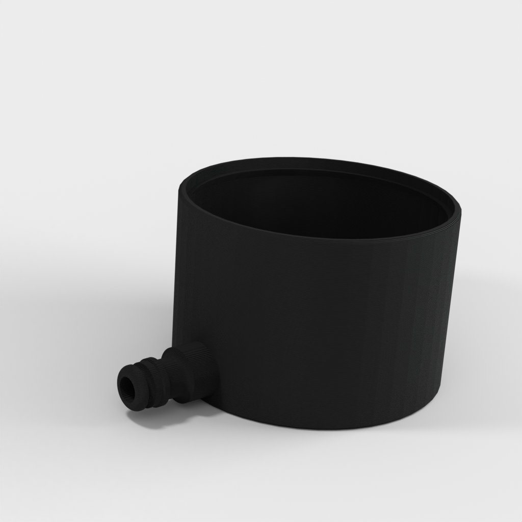 Dette sæt inkluderer en regnvandsopsamler og en nedløbsrør/regnane omstikker til at forbinde din regnvandstønde med forskellige slanger. Omstikkeren har to adaptere, der gør det muligt at tilslutte slanger i forskellige størrelser. Den ene adapter er designet til standard haveslanger, mens den anden adapter er beregnet til større slanger (27,5 mm). Den større slangeadapter kræver en større udskæring i bunden, hvorfor et nyt bundstykke også er inkluderet i sættet.