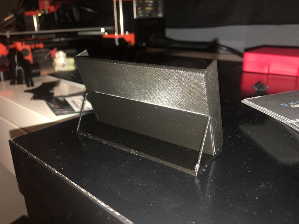 Enkel forretningskortholder til standard størrelse visitkort. Denne model er perfekt til de lidt tykkere visitkort og kan uden besvær rumme 10 stykker. Forretningskortholderen fås i to versioner, en med støtteben og en uden (støttebenene fungerer kun som visuel detalje). I bunden er små fordybninger til gummidupper, så holderen ikke glider rundt på skrivebordet.