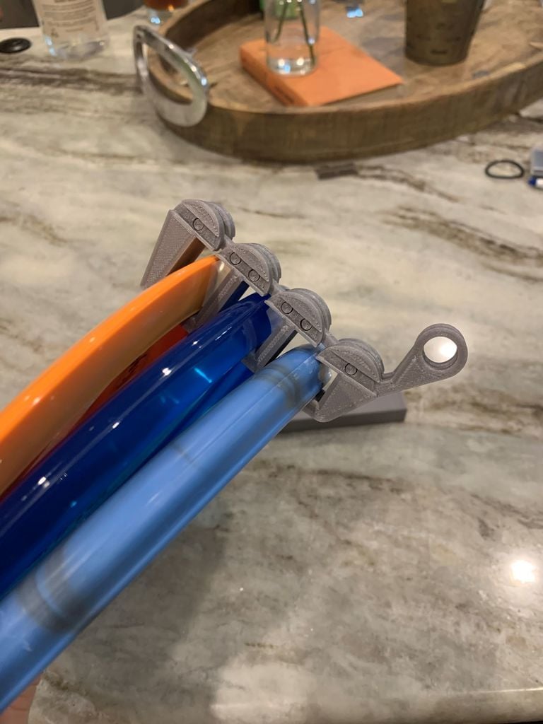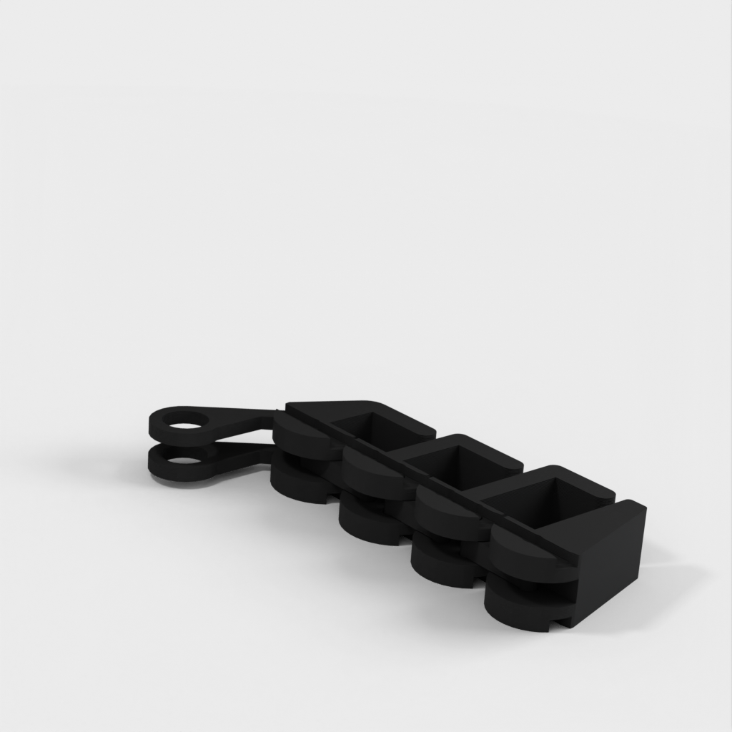 Holderen er kompatibel med puttere, mid range og lang distance disc/frisbees. Den har et 10mm hul, der kan fastgøres til en taske med en karabinhage og kan rumme diske med en læbe-/kantstørrelse på 0-21mm, 0-15,5mm og 0-12mm. Hold dine disc- eller frisbee golf diske organiseret og nemt tilgængelige under din golfrunde med denne praktiske holder.