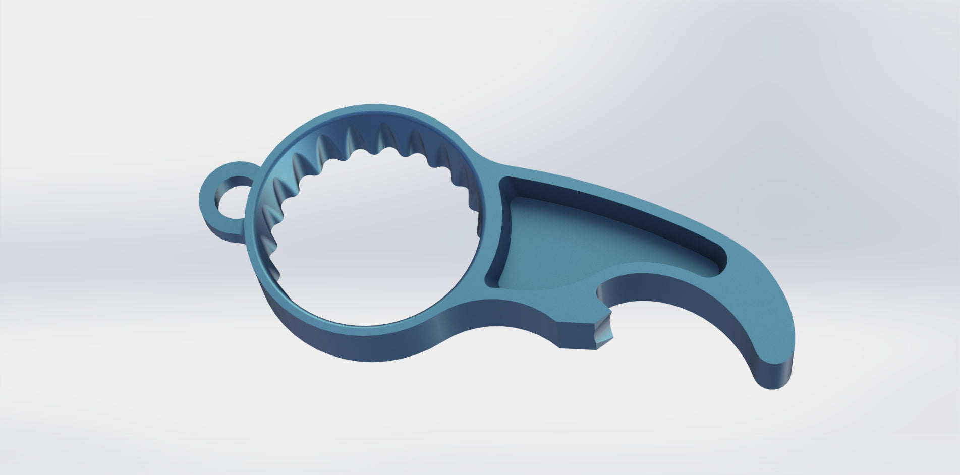 Enkel flaskeåbner egnet til både twist-off og pry-top flasker. Du kan nemt fastgøre produktet til din nøglering ved hjælp af det lille øje.