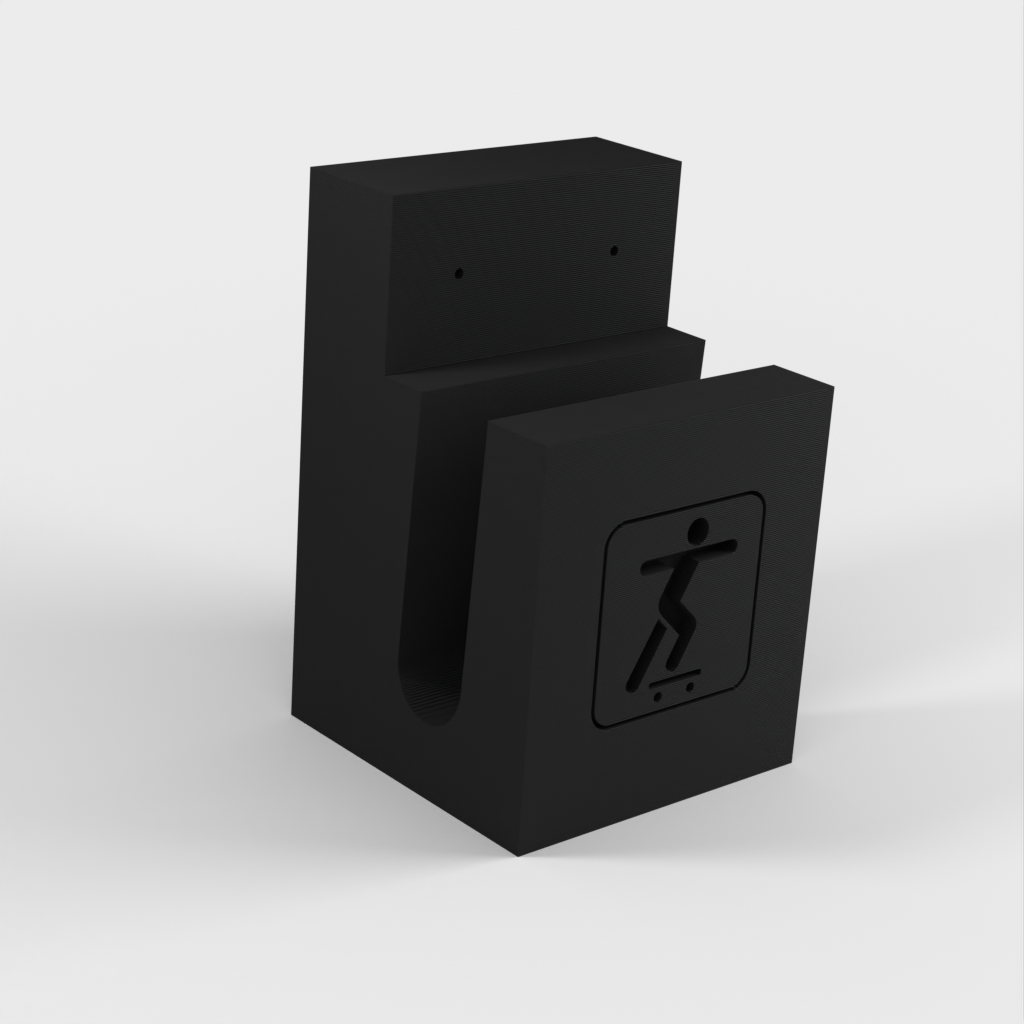 Vægholder til skateboard med to skruehuller for at få dit skate setup mere organiseret og spare plads. Den er konstrueret med en åbning på 24mm for at passe til de fleste skateboard brædder. Nem at montere på væggen, hvilket gør det ideelt til både almindelige skateboards og elektriske skateboards.