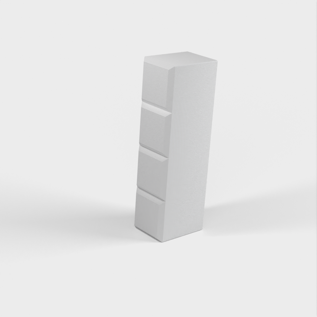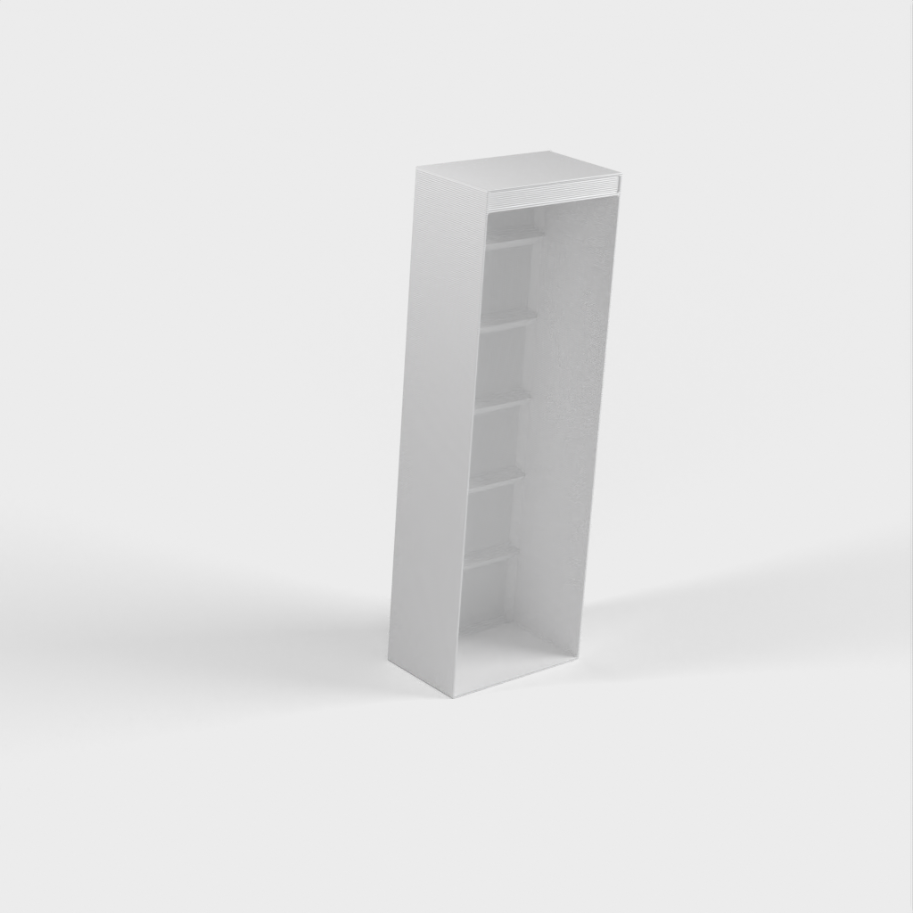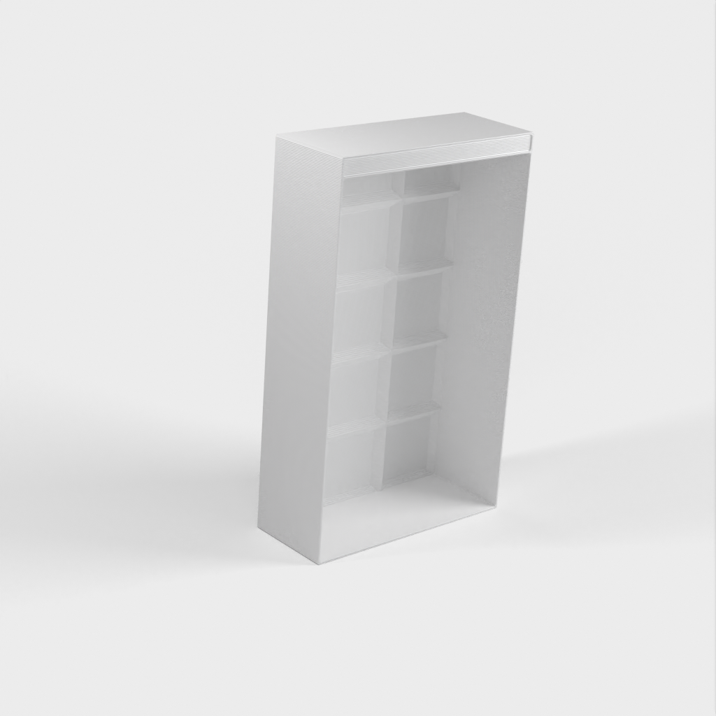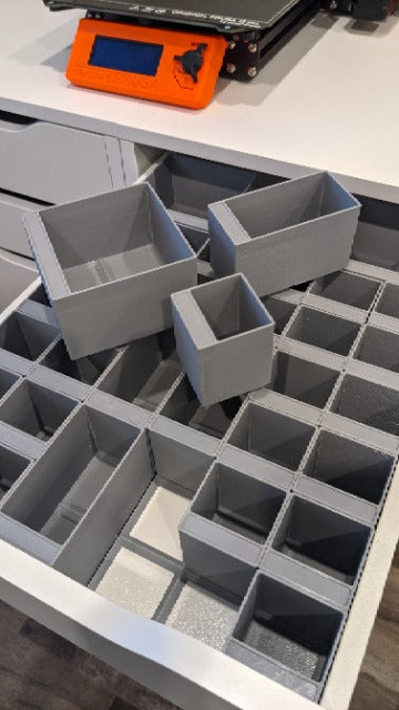 En simpel modulær container system til dine Ikea Alex skuffer! Beholdere kan tilpasses til enhver størrelse, der passer til dine behov. Beholderne sidder i et gitter system i bunden af dine skuffer for at forhindre skift og holde justering. Håndtag med label tape indrykninger for at hjælpe med at holde alt organiseret.