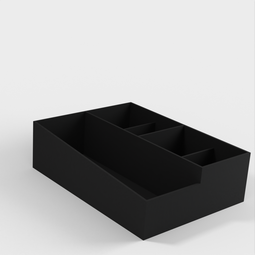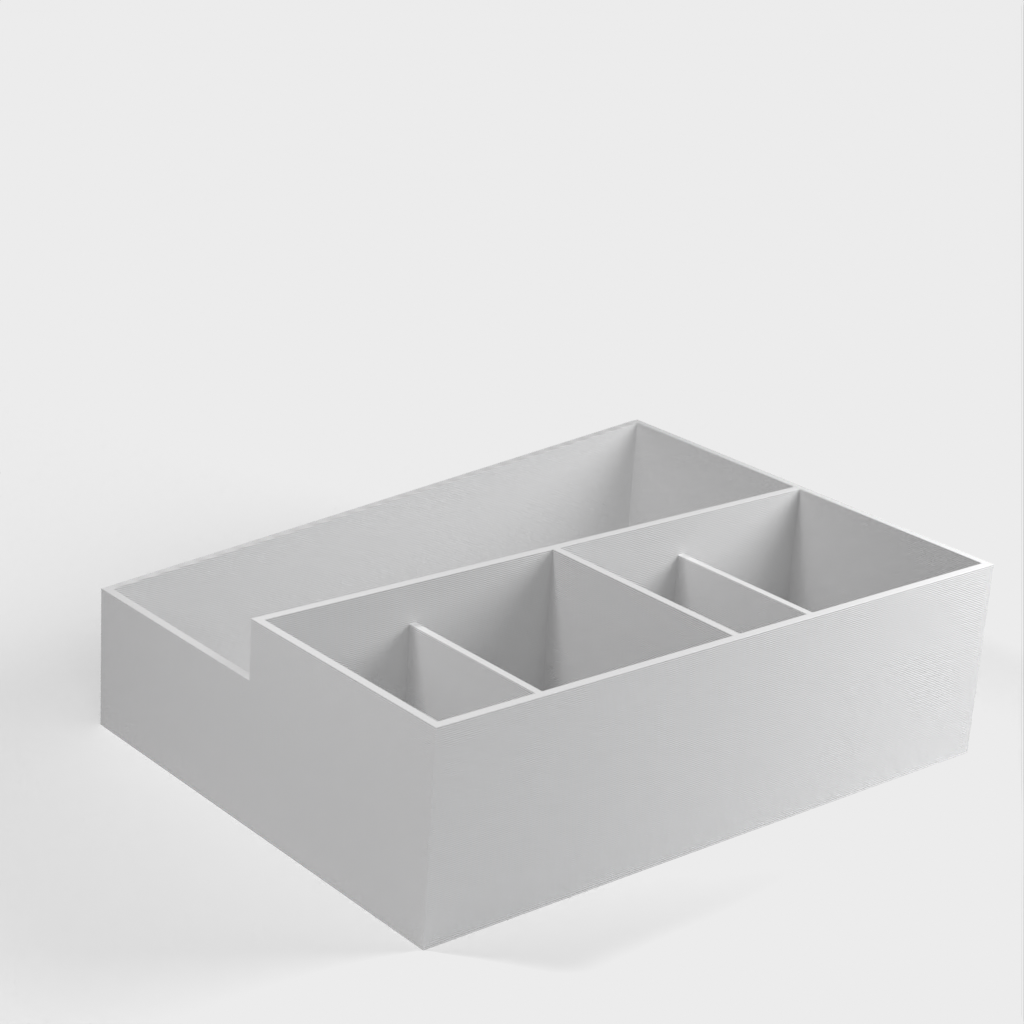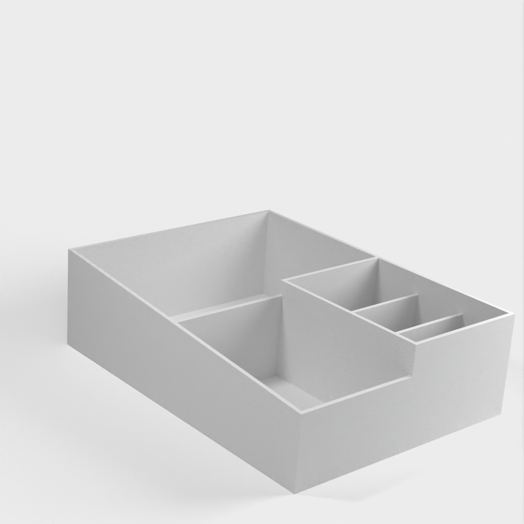 Hver er lavet til at passe i 1/4 område af Ikea 'MALM' natteskuffe, så du er velkommen til at printe 1, 2, 3 eller 4 af dem pr. sengeskuffe. Personligt har jeg kun printet en til venstre og højre for at sidde foran i skuffen, og en til bagerst, men du kunne orientere dem, som du ønsker.