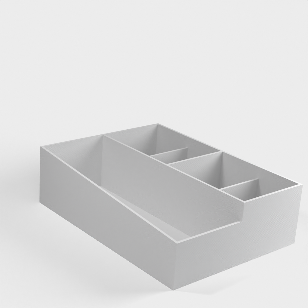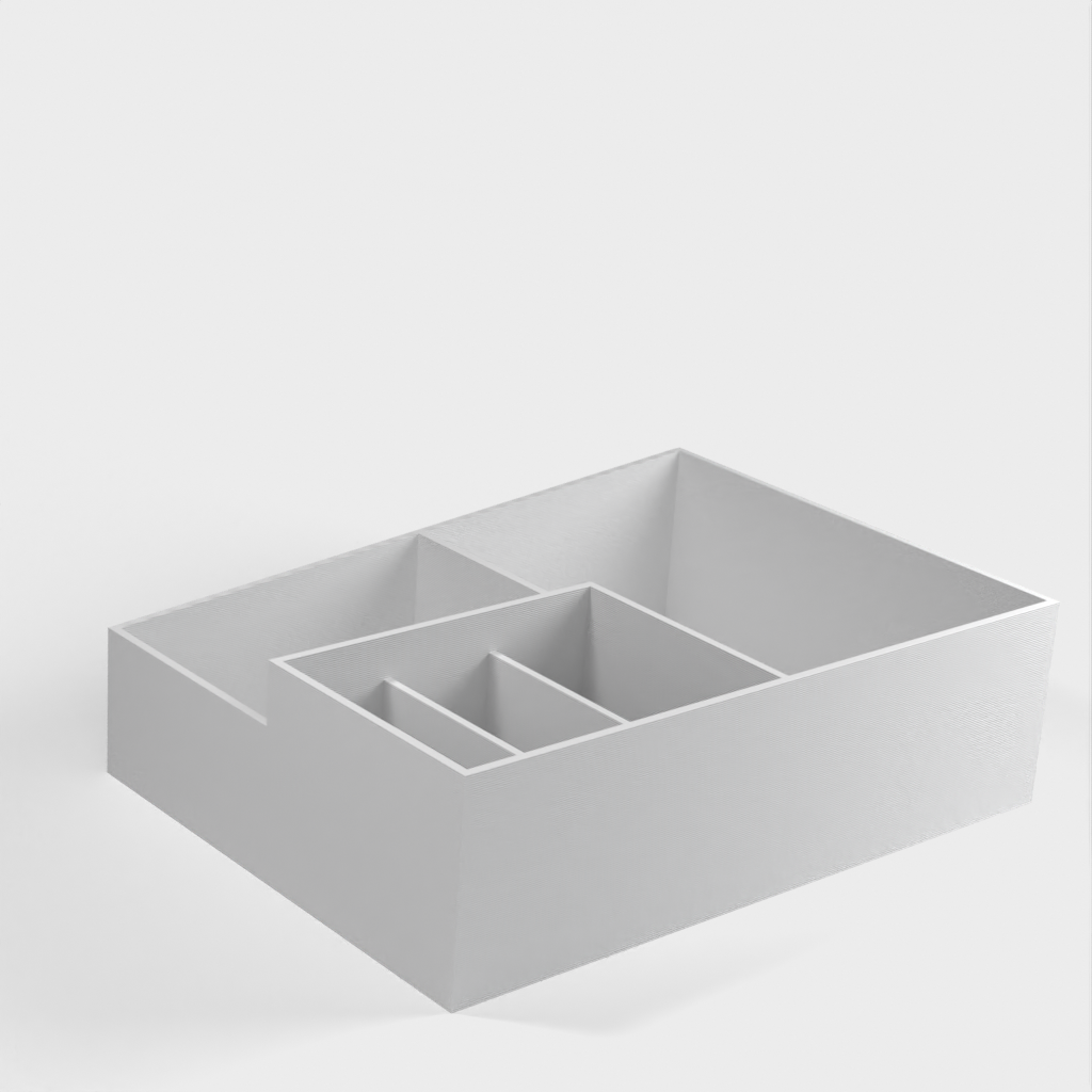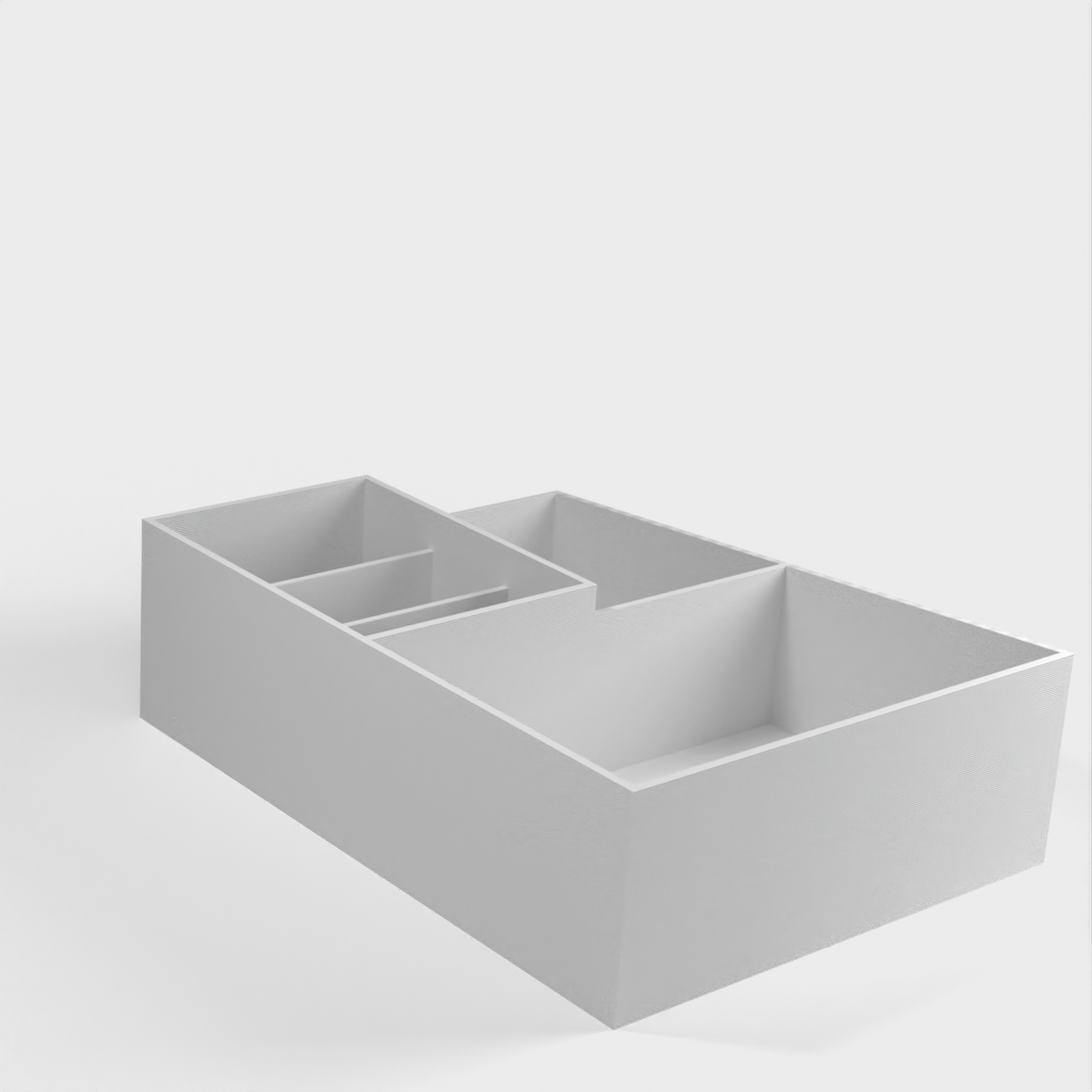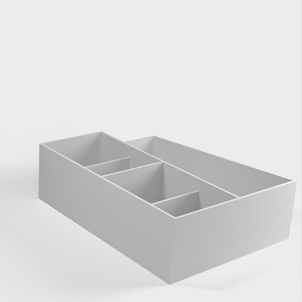Hver er lavet til at passe i 1/4 område af Ikea 'MALM' natteskuffe, så du er velkommen til at printe 1, 2, 3 eller 4 af dem pr. sengeskuffe. Personligt har jeg kun printet en til venstre og højre for at sidde foran i skuffen, og en til bagerst, men du kunne orientere dem, som du ønsker.