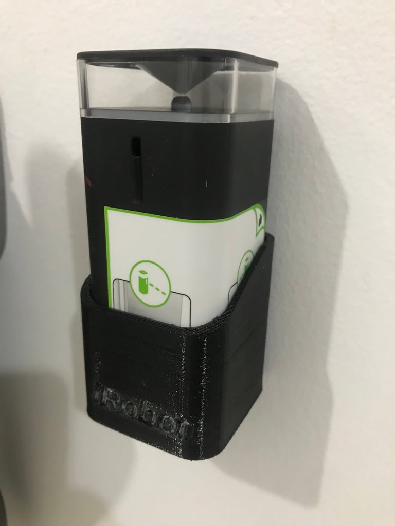 En lille holder til din Roomba Beacon. Denne holder gør det nemt at holde styr på din Roomba Beacon ved at montere den på væggen, hvor du opbevarer dine rengøringsartikler.