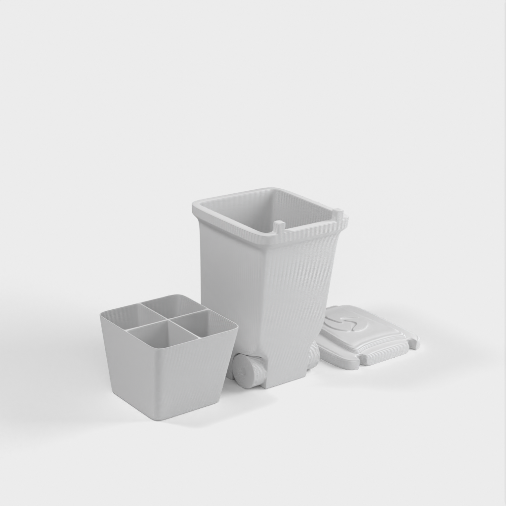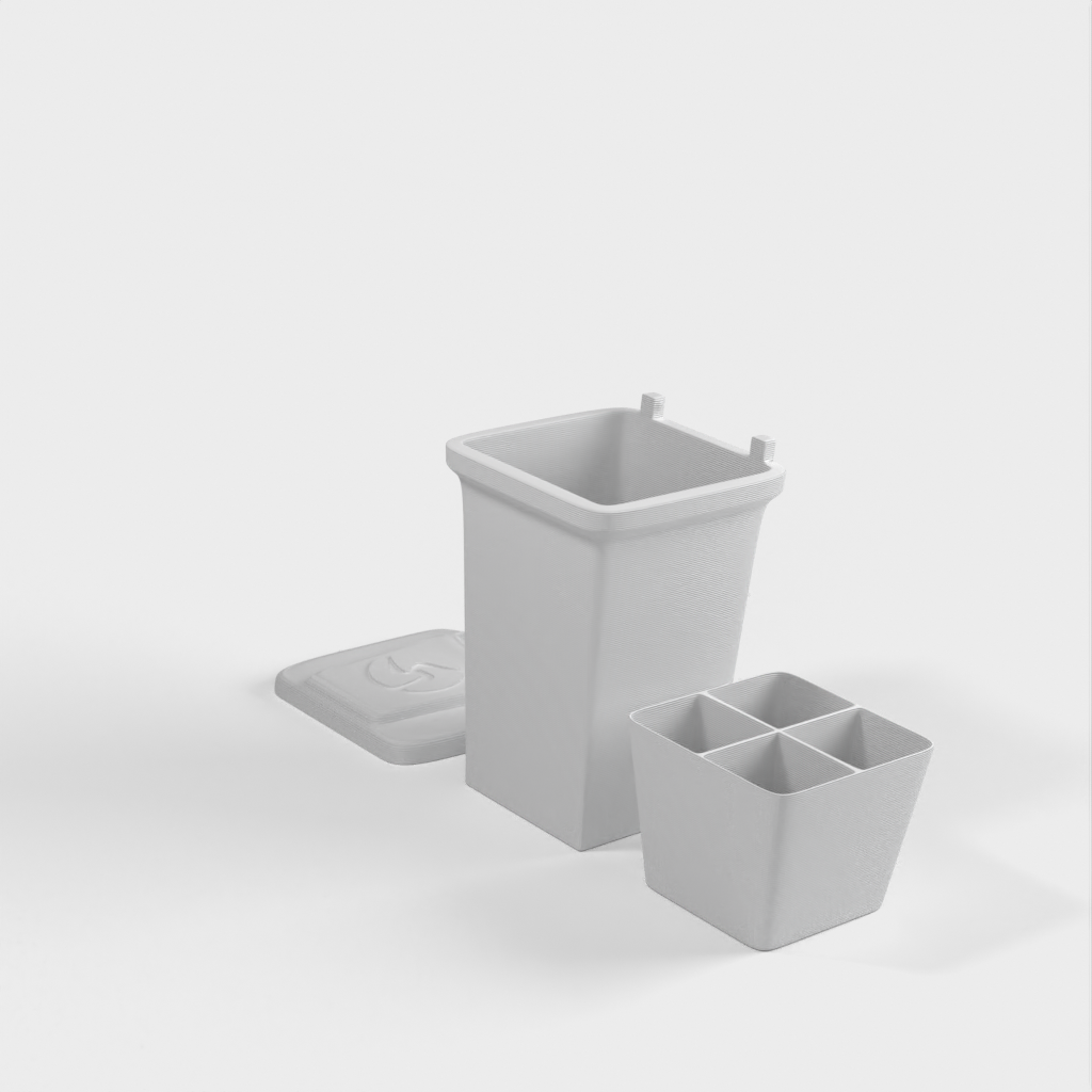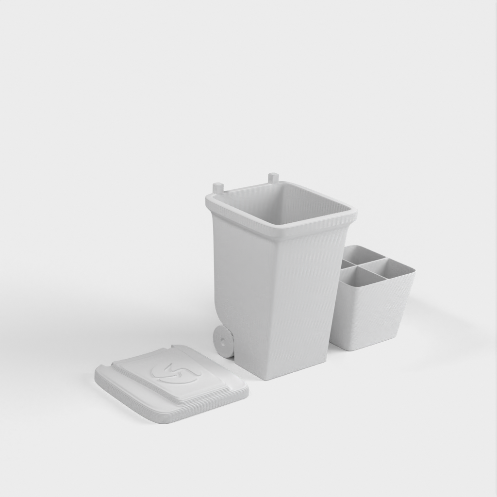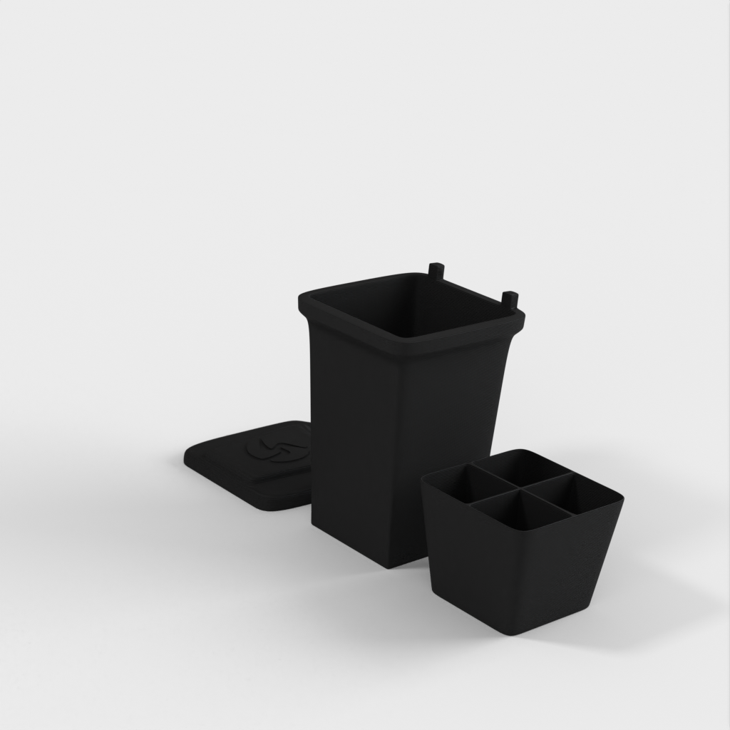 En mini skraldespand til at holde små ting som nødder og bolte. Print delene separat for forskellige materialer eller alle på én gang. Låget klikker på plads, og indsatsen er aftagelig. Designet til lanceringen af vores nye materiale, Landfillament, som er fremstillet af skrald! Lær mere her: https://www.youtube.com/watch?v=TSWXhDounRY