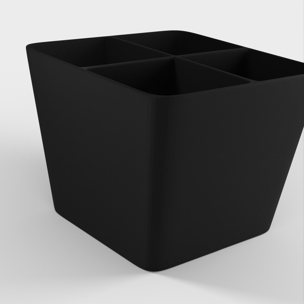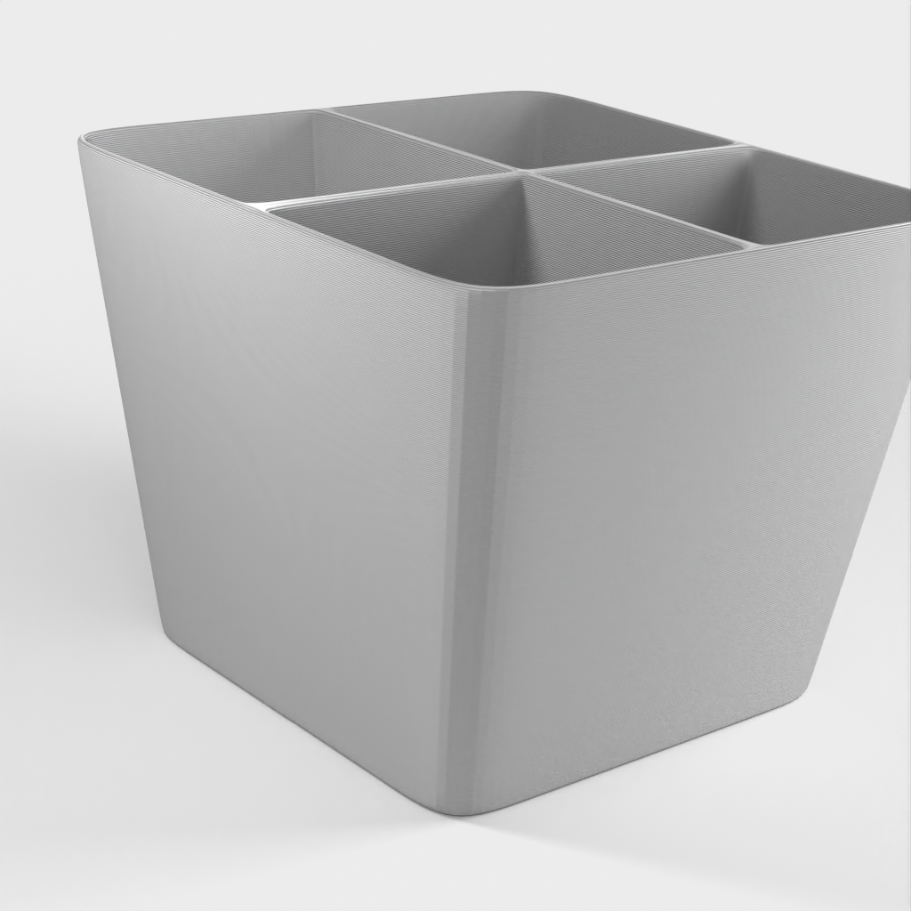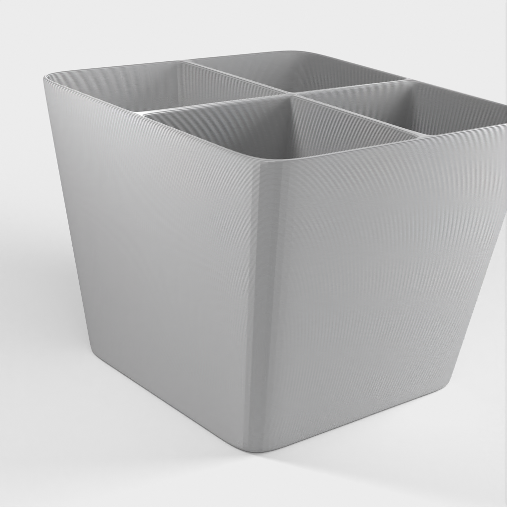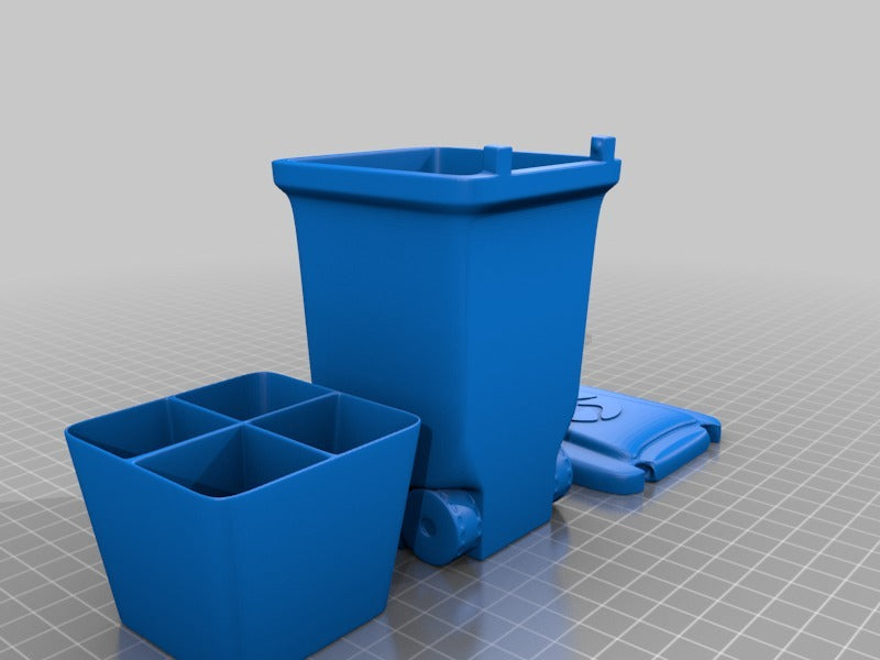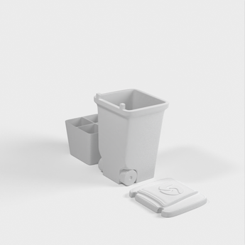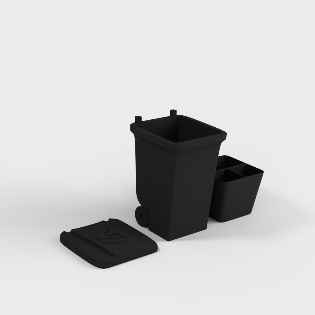 En mini skraldespand til at holde små ting som nødder og bolte. Print delene separat for forskellige materialer eller alle på én gang. Låget klikker på plads, og indsatsen er aftagelig. Designet til lanceringen af vores nye materiale, Landfillament, som er fremstillet af skrald! Lær mere her: https://www.youtube.com/watch?v=TSWXhDounRY