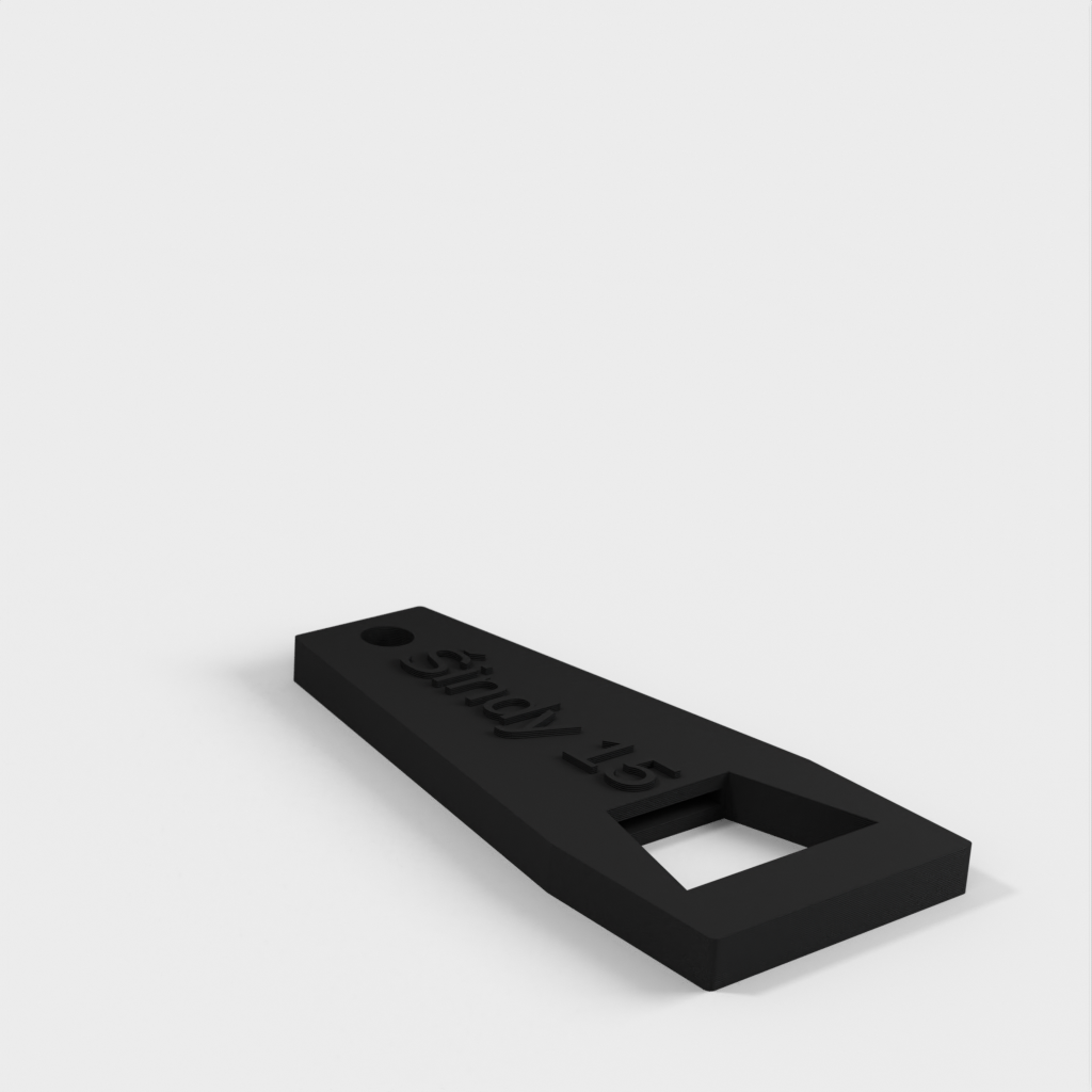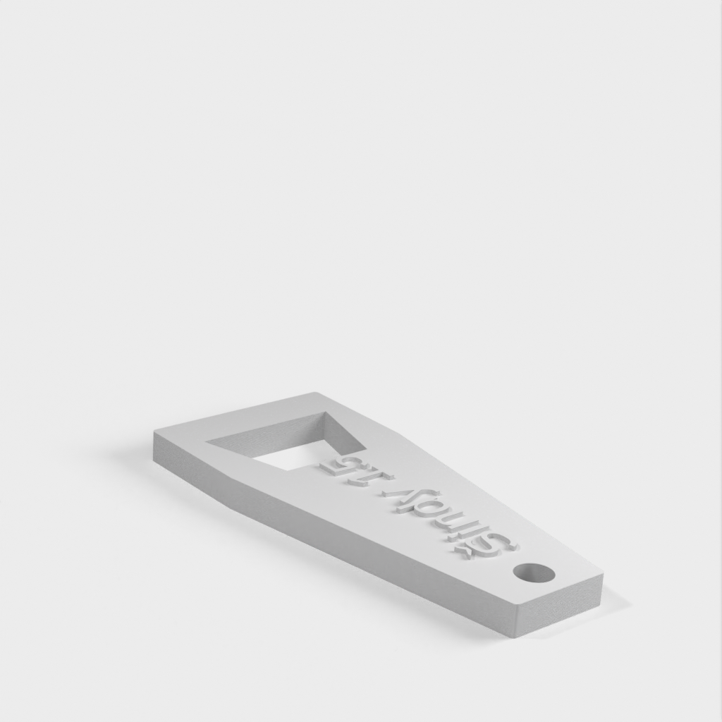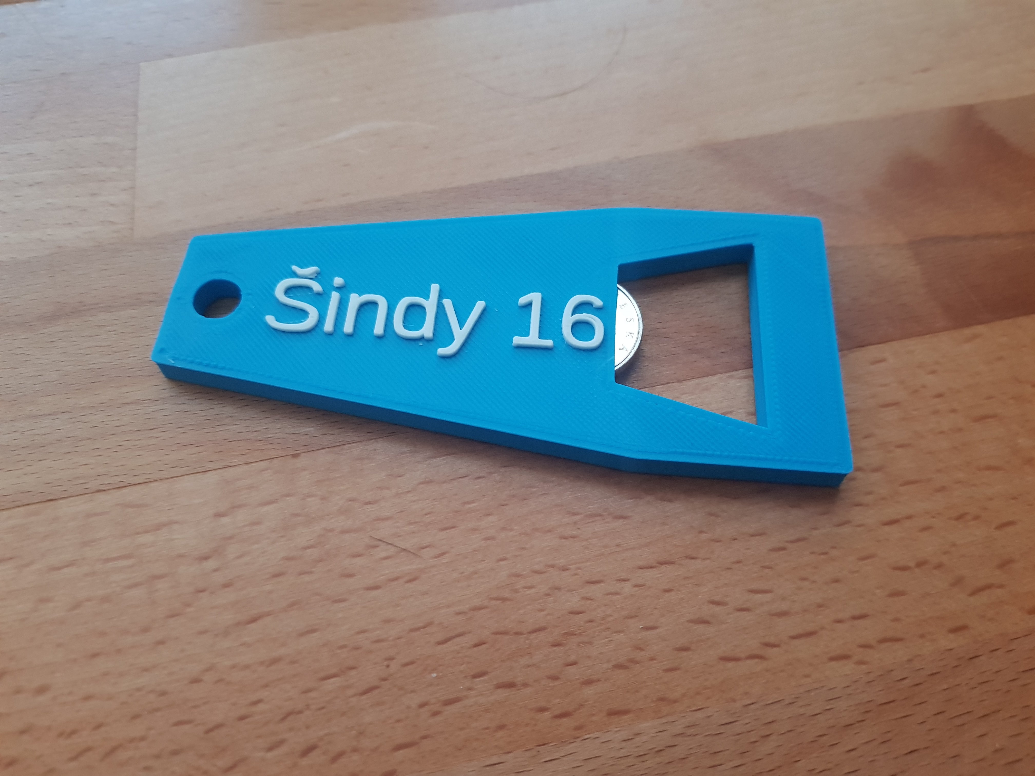 Ølflaskeåbner inspireret af Prusa, som bruger en mønt. Husk at opsætte printpause for at kunne indsætte mønten, og eventuelt også opsæt en ændring af filamentet for at printe dekorationen i en anden farve. For at ændre dekorationsteksten og få den seneste version, se repository med en OpenSCAD kode.