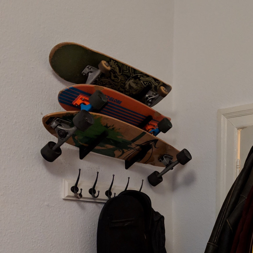 Skateboard vægbelsag er et skateboard vægbeslag, der hjælper med at holde dit skateboard sikkert og pænt opbevaret på væggen. Du skal blot skrue dem fast på væggen for at skabe en praktisk og stilfuld opbevaringsløsning til dine skateboards.
