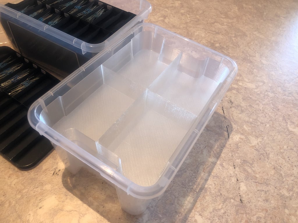 Dette er justerbare indsatsdele til IKEA Samla kasser i størrelserne 5 liter. De giver dig mulighed for at skabe et justerbart netværk inden i kasserne, så du bedre kan organisere dine genstande. De er splitterbare i halve og kvarte, hvilket giver yderligere tilpasningsmuligheder. Du kan endda indgrave eller præge lagmærker for bedre organisering. De er ideelle til nem adgang og organisering af små dele, og for at lave et system der bedst passer til dine behov.