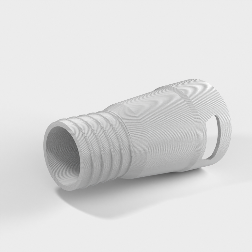 En adapter til slangen på en Kärcher WD 6 P Premium støvsuger. Adapteren muliggør tilslutningen til en ~40mm slange, hvilket gør den praktisk for adskillige anvendelsesmuligheder i forbindelse med rengøring og vedligeholdelse.