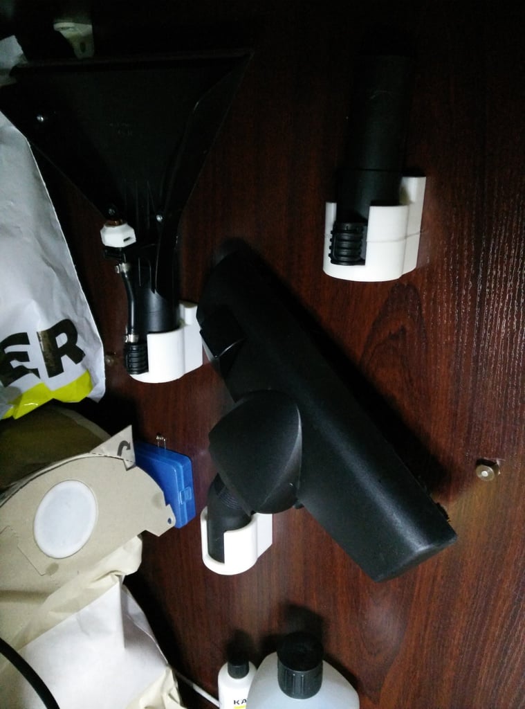 Dette er en dysevægholder til Kärcher støvsugeren. Den er designet til at holde dysen sikkert på plads, når den ikke er i brug. Den passer til dyser med en ydre diameter på 39mm og en indre diameter på 35mm.