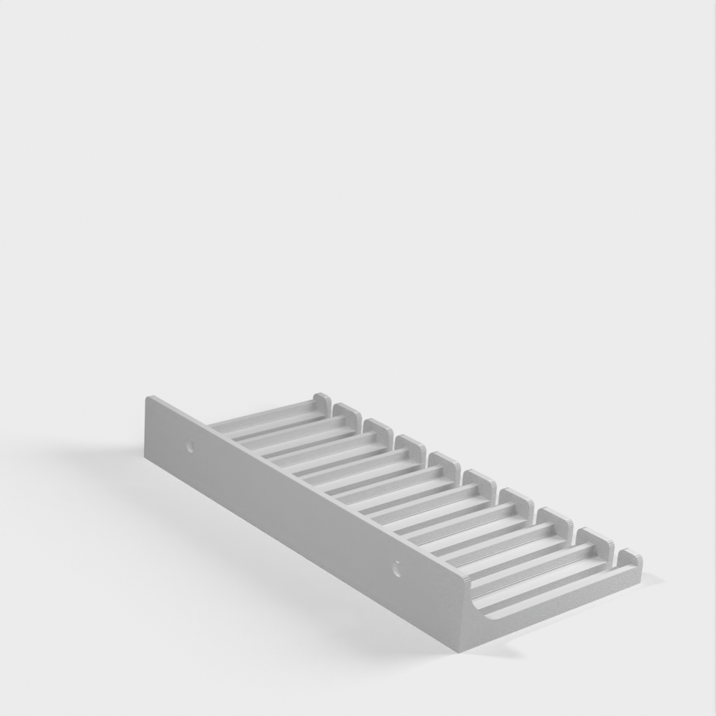 Dette er en kabelholder til 3mm alligator kabler, perfekt til organisering af kablerne i dit lab. Designet er specielt optimeret for at undgå skarpe kanter, hvilket hjælper med at forlænge produktets levetid. Det er lavet til at hænge mindre kabler perfekt.