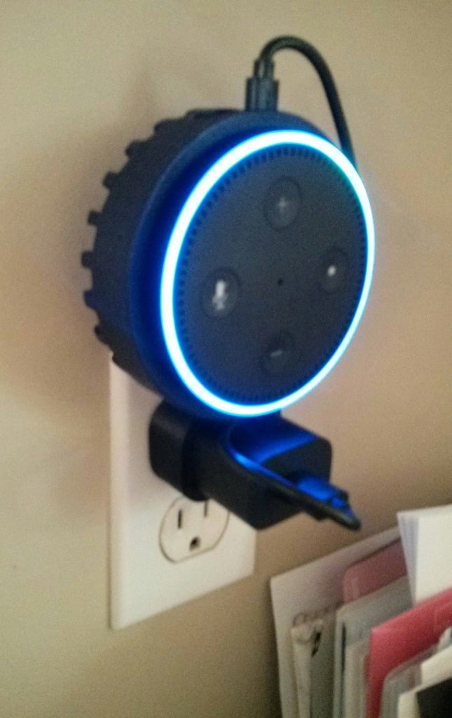 Dette tilbehør tillader dig at montere den 2. generation Echo Dot direkte på det elektriske stik, du tilslutter Dot'en til. Dette gøres i kombination med TinkeringT's Amazon Echo Dot Wall Mount.