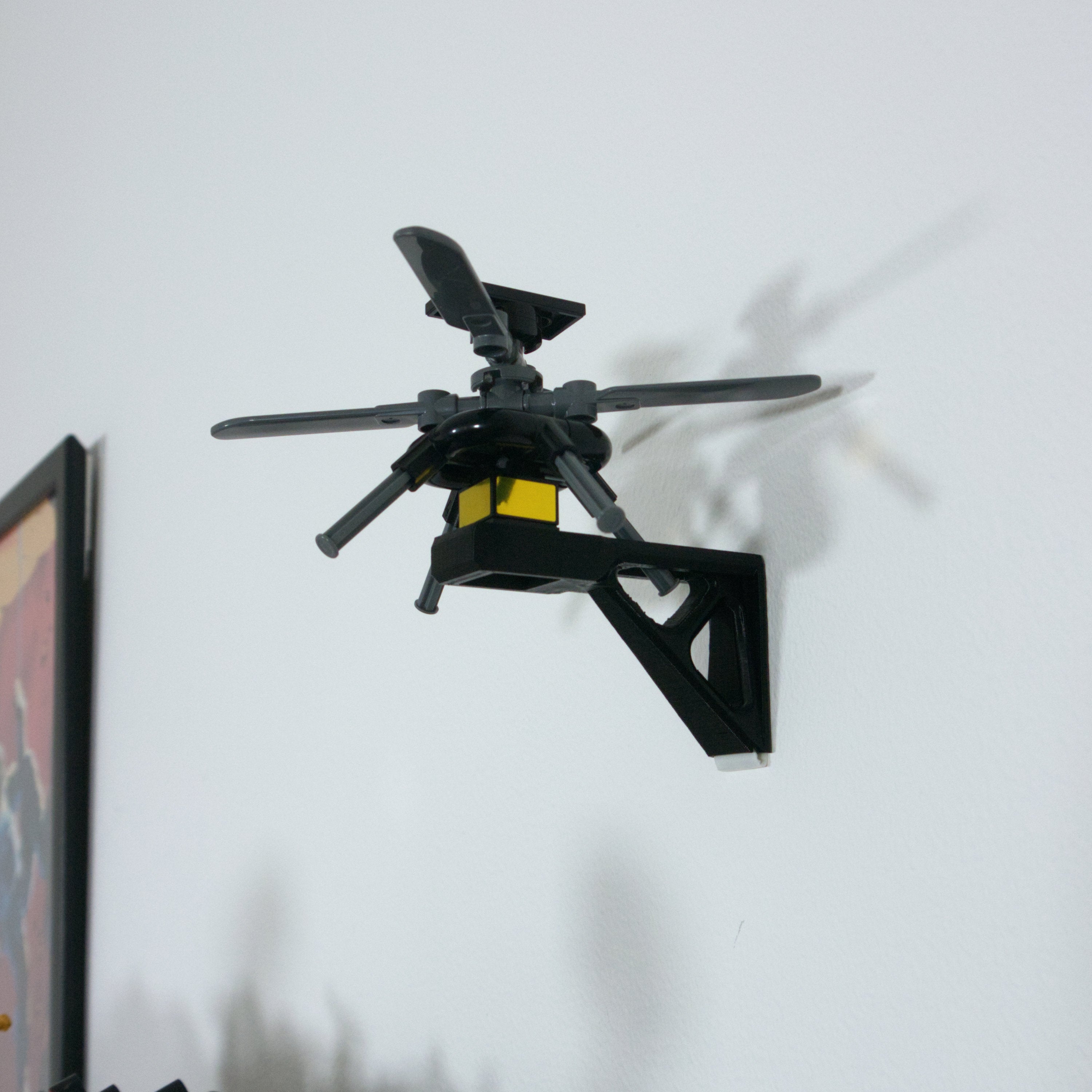 Dette vægbeslag gør det muligt at udstille din NASA Mars Rover Perseverance vandret på væggen. Løsningen kræver kun ét borehul til montering og gør det nemt at tage modellen ned igen. Der medfølger desuden et separat ophæng til Ingenuity-helikopteren for en komplet præsentation.