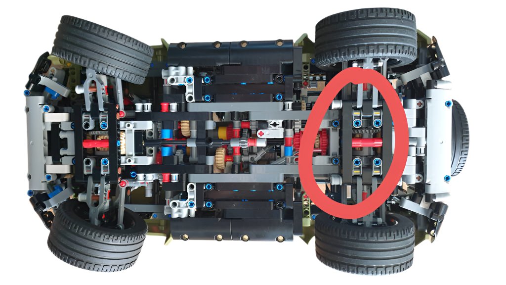 På det sidste billede kan du se, hvor monteringen griber ind i chassiset (rød cirkel).