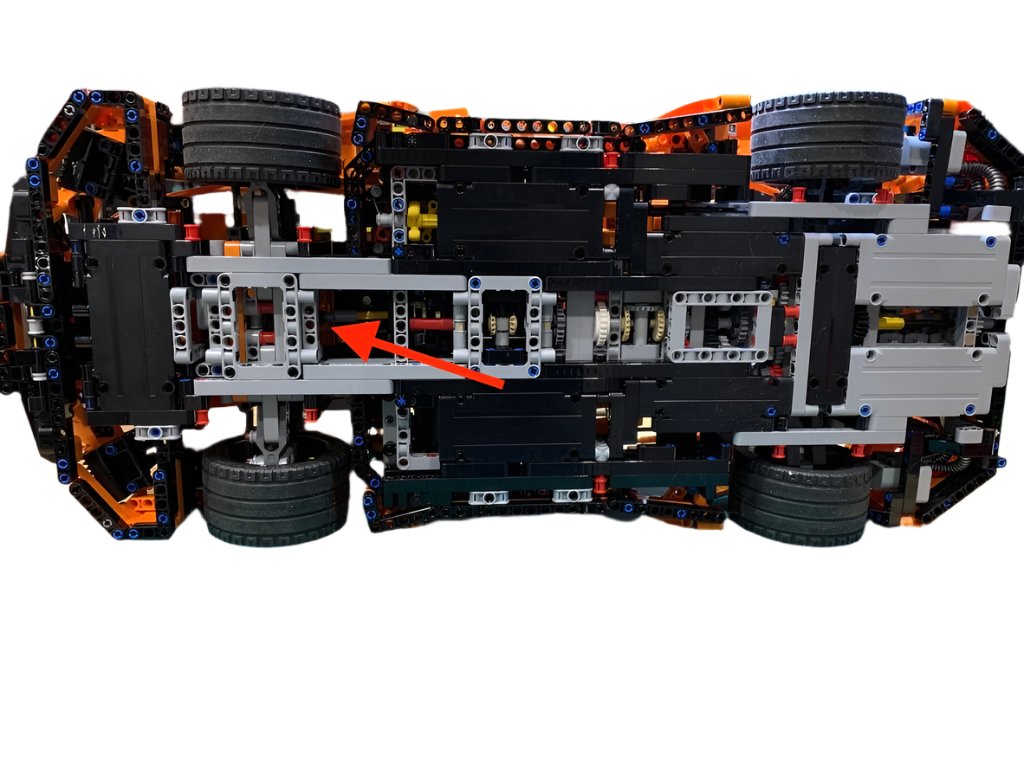 Enkel vægmontering til LEGO 42056 Porsche GT3 RS. Den holder fast på et ret stærkt punkt på chassiet.