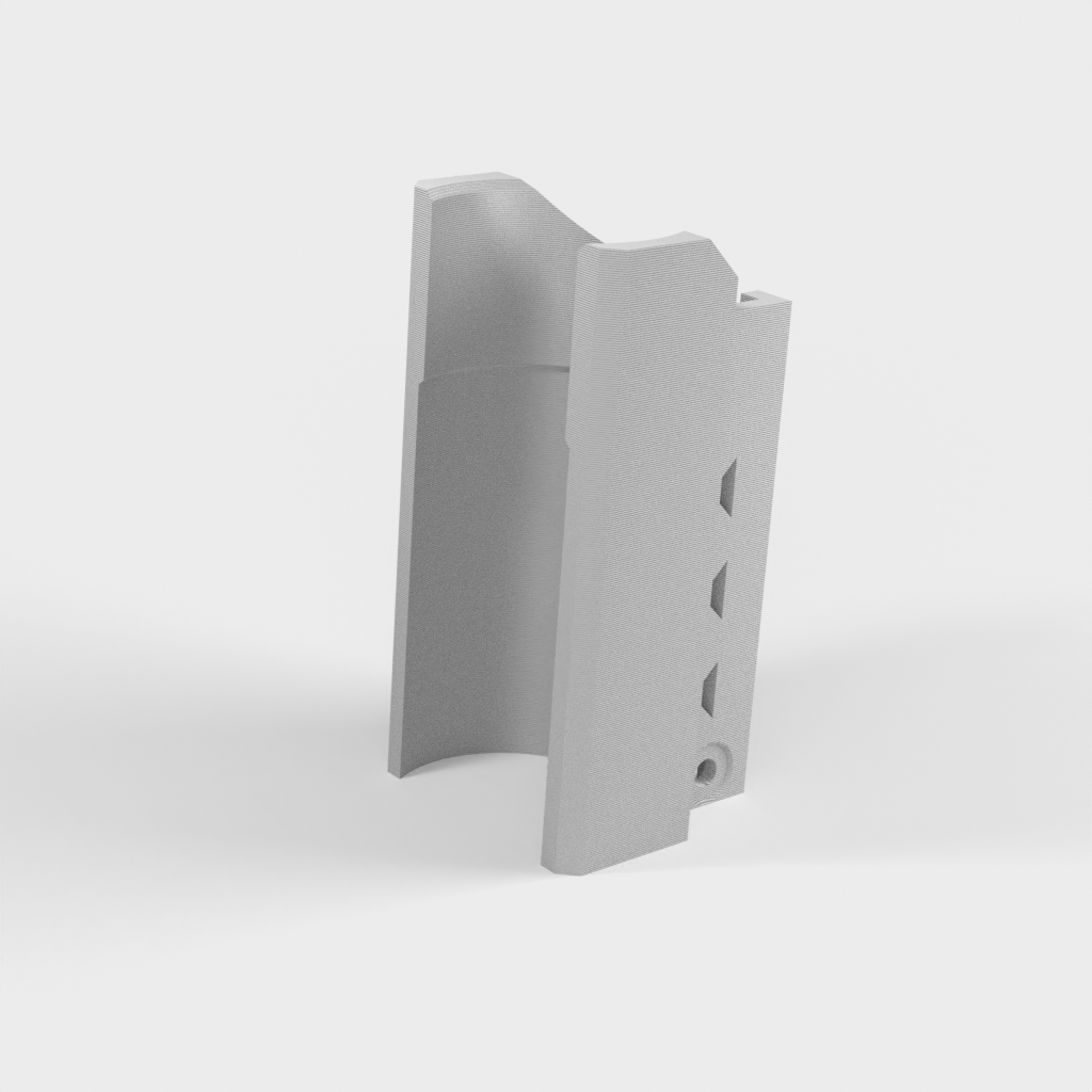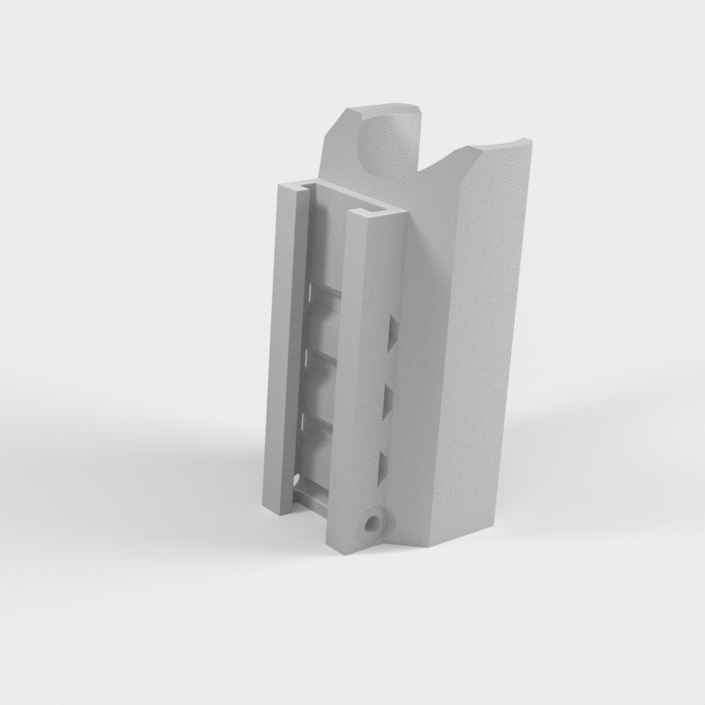 Dette er en taktisk fakkelmontering til Nerf Elite Rails. Designet til de zoomable 2000 Lumen LED fakler, du kan finde på Amazon. De nødvendige dele er: 2 eller 3 kabelbind, en M3 skrue bolts 25mm lang, M3 nut, en fakkel og en Nerf pistol. Hullerne tager en M3 bolt igennem dem, og er designet til at sidde i fordybningerne på Nerf Rail. Dette forhindrer vedhæftningsfilen i at falde af. De 3 huller på siden er til kabelbind til at holde faklen på plads. Dette er designet til at udskrive uden understøttelse opretstående, hvilket også tillader den største styrke til at holde faklen. Bemærk venligst, at dette kun fungerer med Elite Rails og kun er blevet testet på en Stryfe.