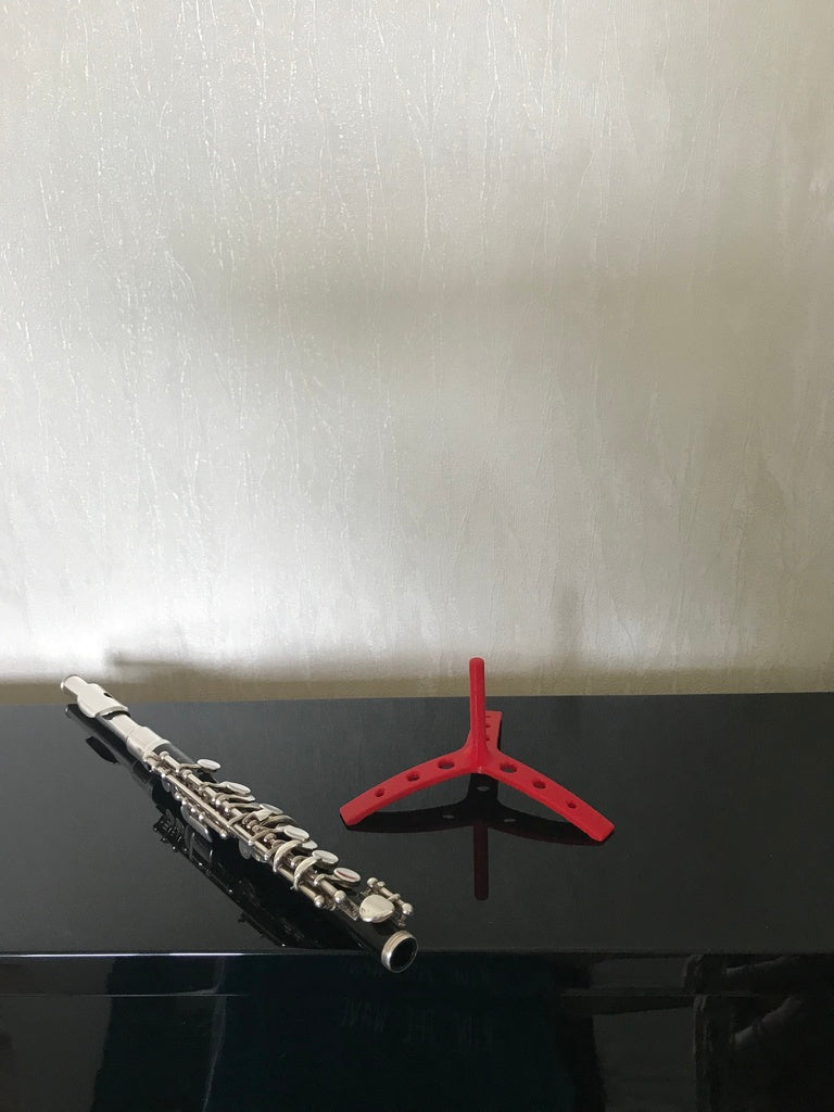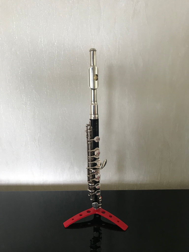 Dette er en piccolo stativ, som er meget pålidelig for øget sikkerhed. Piccoloen kan nemt placeres i stativet, hvilket giver en mere organiseret og sikker opbevaring til dit musikudstyr.