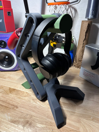Forbedr din gaming- eller arbejdsstation med dette funktionelle og stilfulde hovedtelefonstativ, der er inspireret af industrielt design. Dette robuste stativ er skabt til at give en organiseret og æstetisk tiltalende løsning til opbevaring af dit lydudstyr og dine spilcontrollere. Uanset om du er en dedikeret gamer eller blot ønsker at holde dine hovedtelefoner og controllere pænt på plads, tilbyder dette stativ rigelig plads og en stabil base.