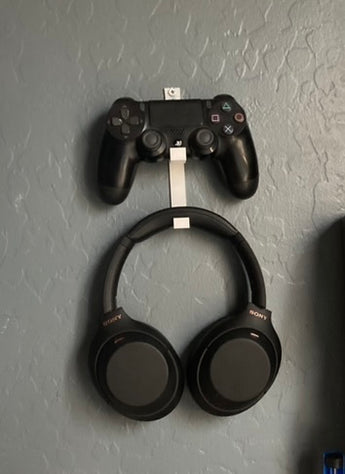 - Vægmonteret holder til en PS4-controller og et sæt høretelefoner.