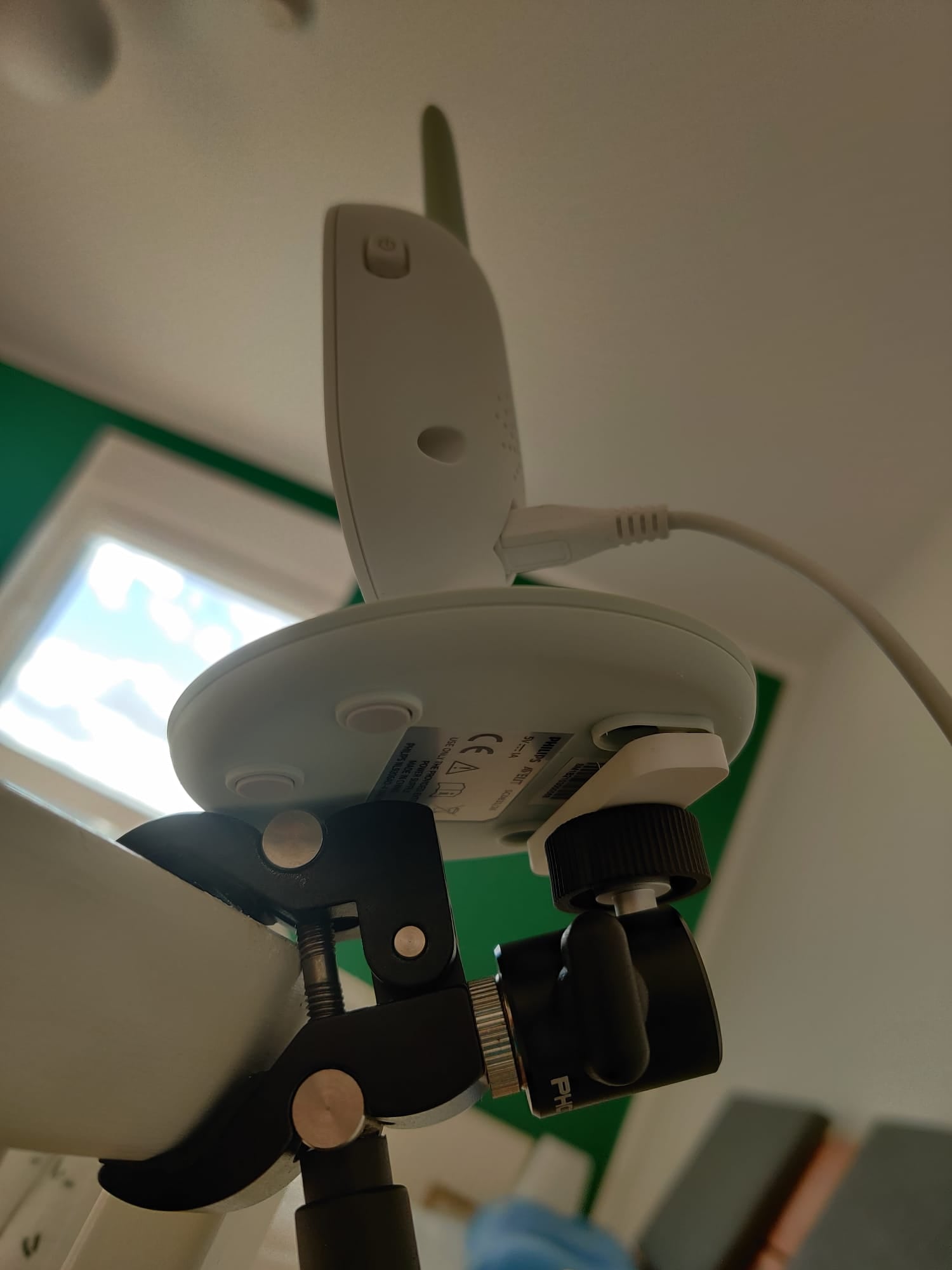 Med dette beslag kan du trygt overvåge din baby og sikre, at du altid har et klart og pålideligt billede af dit barns aktiviteter. Det understøtter en alsidig anvendelse, hvad enten det er ved sengen, i legerummet eller i andre områder, hvor en fast placering er ønskelig.