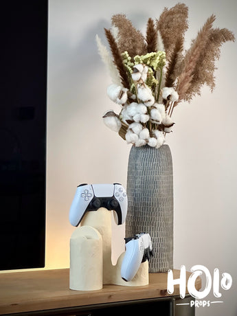 Denne moderne bordstander giver en stilfuld opbevaringsløsning til dit gamingudstyr. Den er designet til at holde tre controllere samtidigt og er kompatibel med både PlayStation, Xbox og Nintendo Switch. Det minimalistiske design passer ind i de fleste indretninger og sikrer, at dine controllere altid er organiserede og klar til brug.