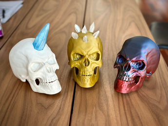 Disse artikulerede kranier er en ideel Halloween dekoration til hjemmet. Vælg mellem Classic, Punk eller Unicorn design, der alle har en bevægelig kæbe styret af en skjult mekanisme. De fungerer perfekt som uhyggelig pynt på hylden eller skrivebordet for at skabe den rette stemning.