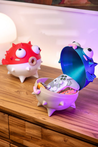 Denne finurlige kuglefisk tilbyder en sjov måde at organisere skrivebordet på. Den er ideel til opbevaring af controllere, blyanter eller småt tilbehør og tilføjer et charmerende præg til indretningen. Med justerbare øjne kan udtrykket ændres, hvilket gør den til en unik og funktionel beholder, der står stabilt på bordet.