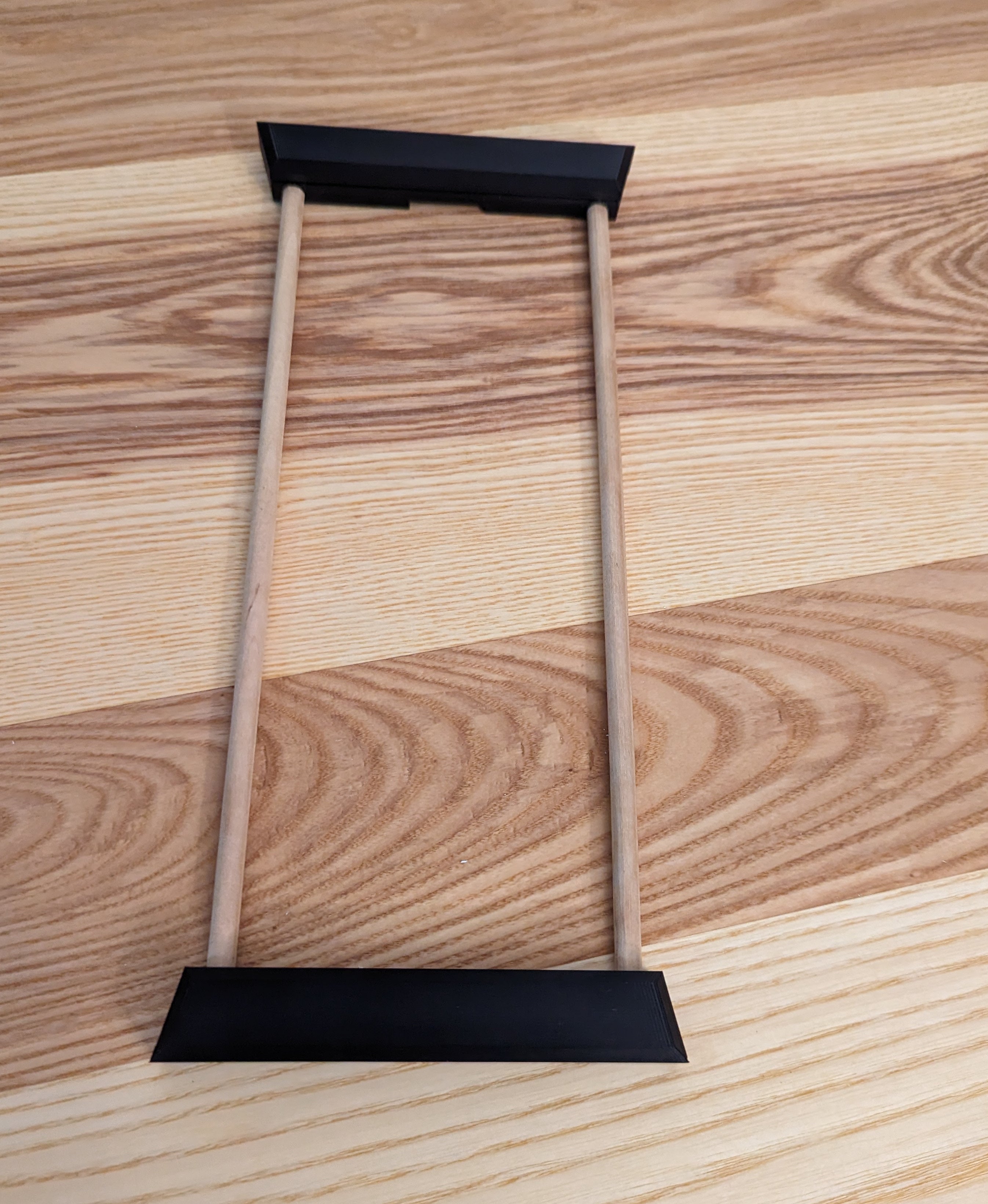 Vægophænget er opdelt i en top- og en bunddel, der samles med en passende dyvel for en stabil konstruktion. Denne fleksible løsning kan tilpasses en bred vifte af pladestørrelser, hvilket sikrer, at dine mest elskede billeder får den opmærksomhed, de fortjener.