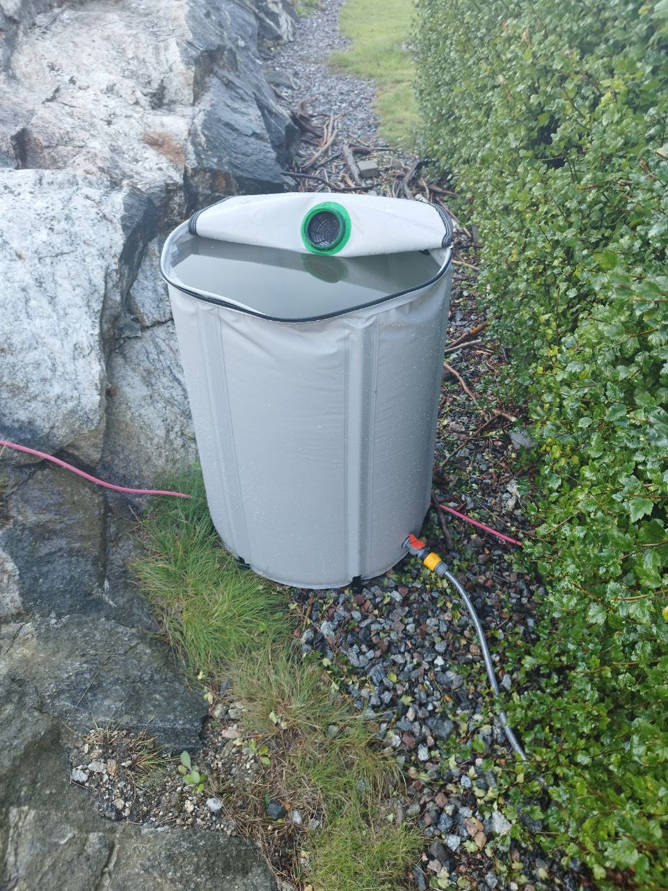Denne regnvandsopsamler er designet til at opsamle regnvand fra din tagrende. Vandsamleren er i stand til at opsamle regnvand fra tagrender og sende det til en beholder, der er placeret så højt som muligt. Dette gøres ved hjælp af vandets hydrostatiske tryk, hvilket gør pumpeløs vanding muligt. Vandsamleren har en bladfælde, der forhindrer blade i at komme ind i slangen.