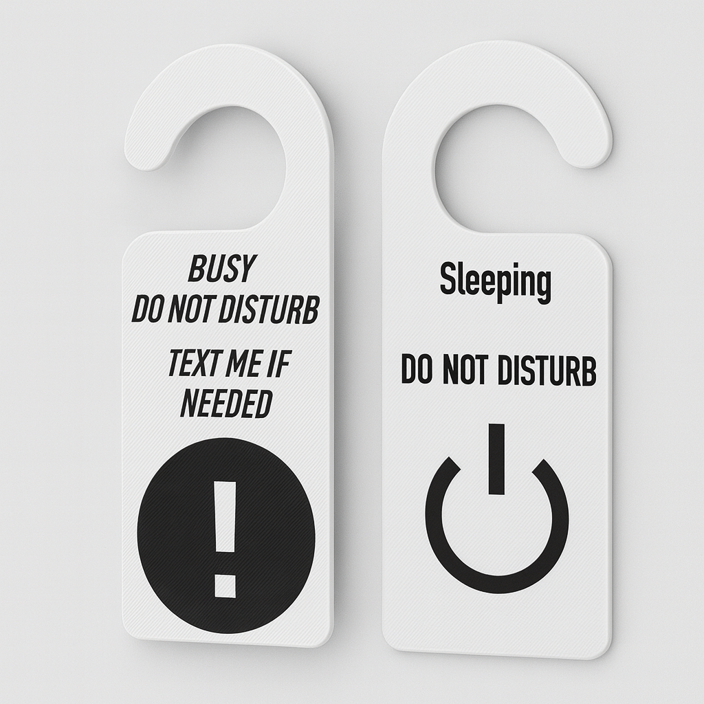 Dette skilt er en høflig måde at fortælle folk, at du koncentrerer dig, arbejder eller bare ønsker at være i fred for øjeblikket. Skiltet formår både at udtrykke dit ønske om at blive ladt i fred på en fast og samtidig høflig måde, så du bevarer freden og harmonien.