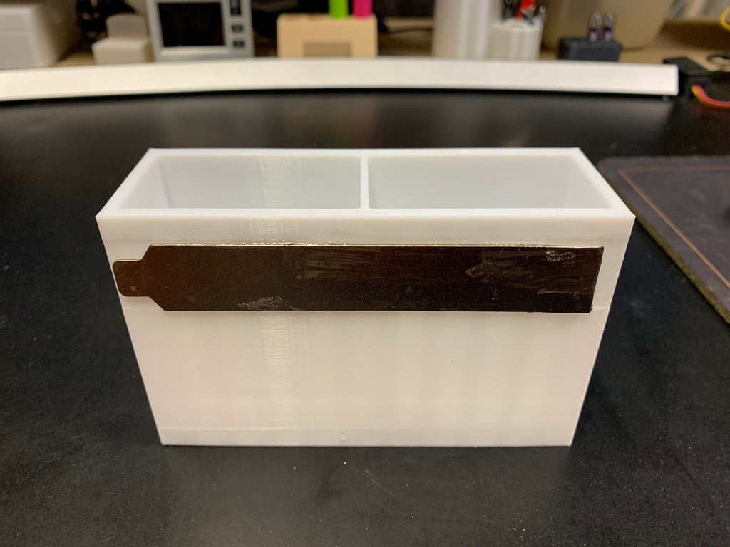 Denne værktøjskasse er designet til at give en organiseret opbevaringsløsning for dine småværktøjer. Den fastgøres nemt til en magnetisk værktøjsliste, som dem ofte brugt i værksteder eller ved 3D-printere, hvilket sikrer, at dine mest anvendte redskaber er inden for rækkevidde. Den er ideel til opbevaring af værktøj som unbrakonøgler, tænger eller endda et strømskruetrækker-tilbehør, som du ofte benytter under arbejde. Med en indbygget fordybning på bagsiden opnås en plan montering mod den magnetiske holder, hvilket bidrager til et ryddeligt og funktionelt arbejdsområde. Denne værktøjskasse er en praktisk tilføjelse for at holde orden på dit værktøj og forbedre effektiviteten i dit arbejdsflow.