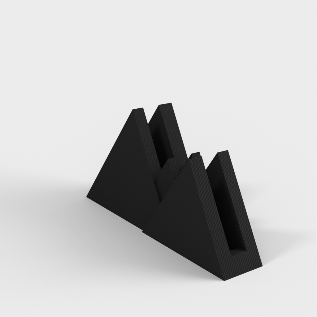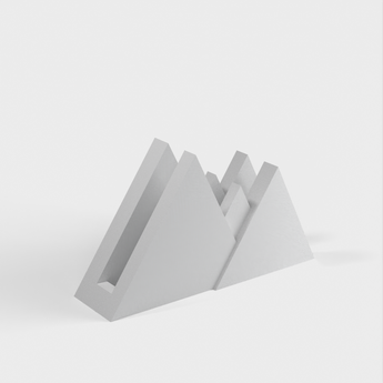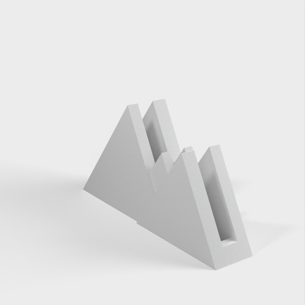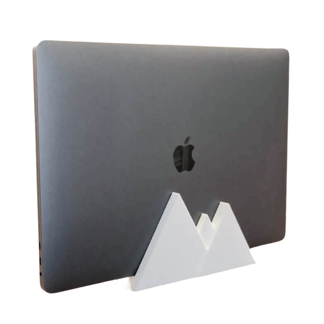 En simpelt men robust lodret stativ til en Macbook Pro med et integreret bjerglandskab. Selve hullet Macbook'en sidder i er 1,62 cm bred og passer derfor til de fleste modeller.