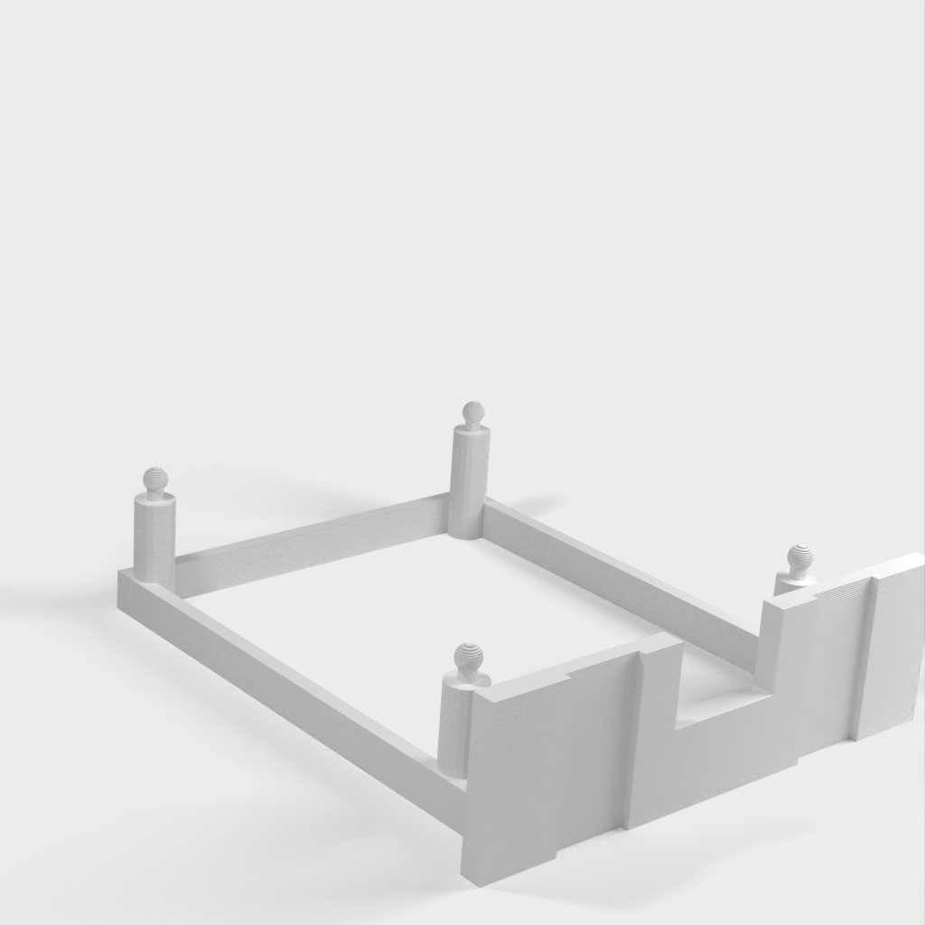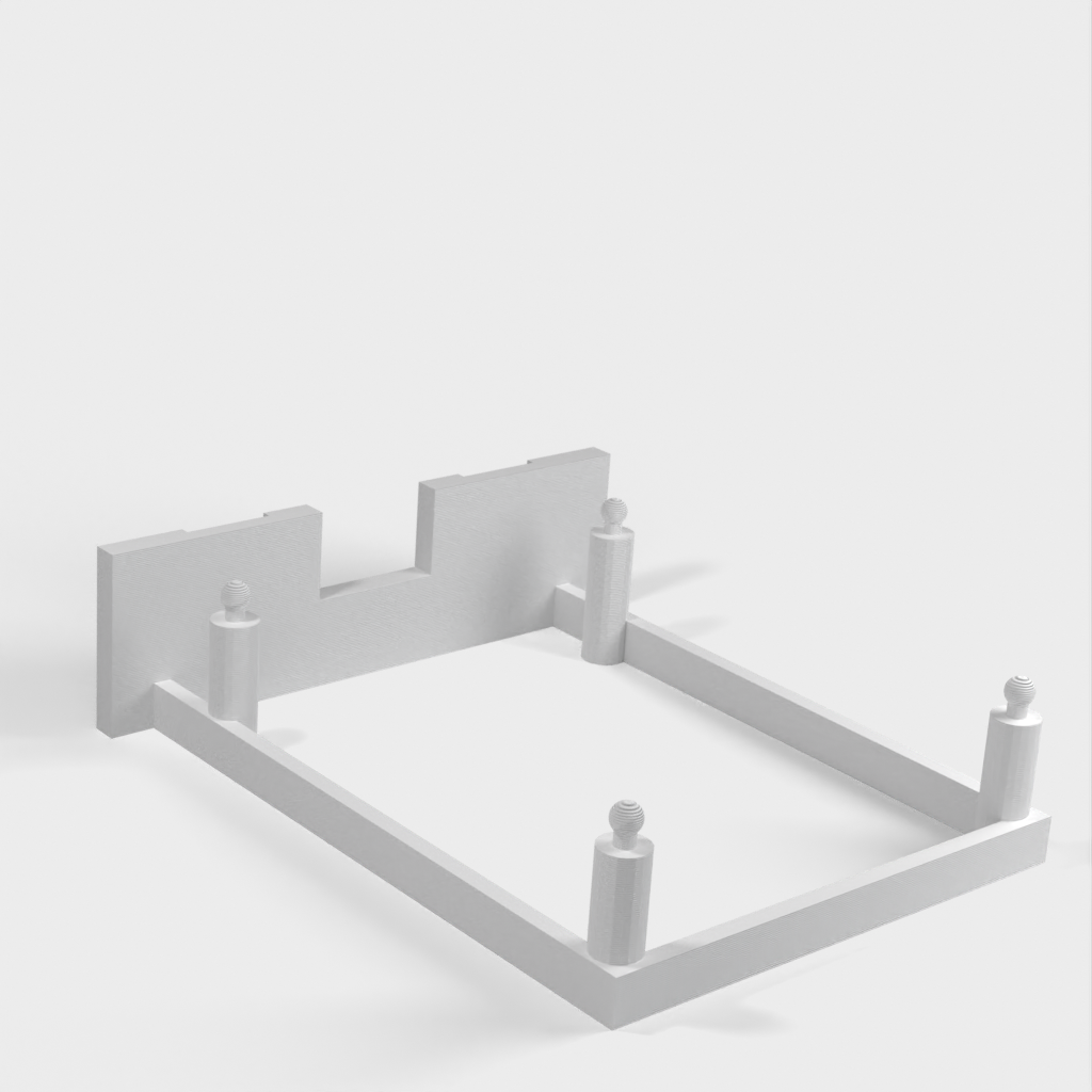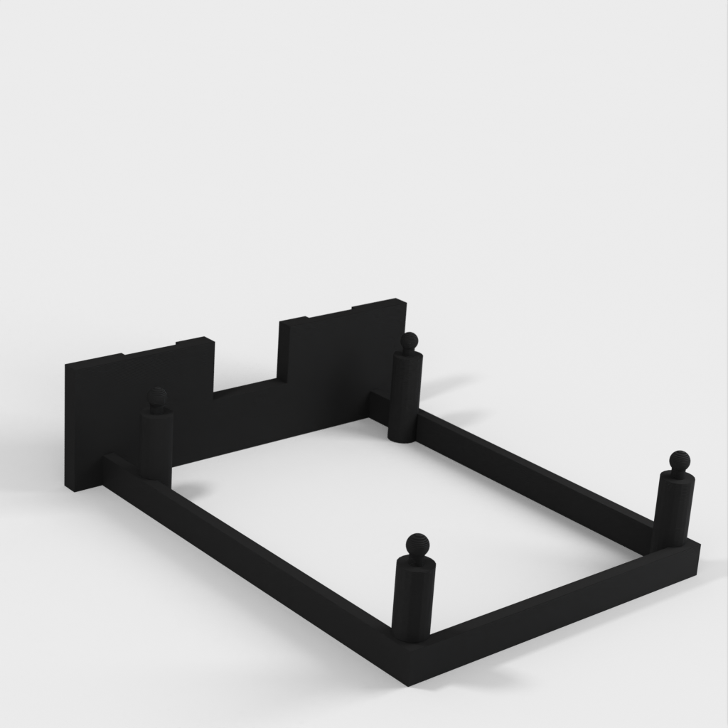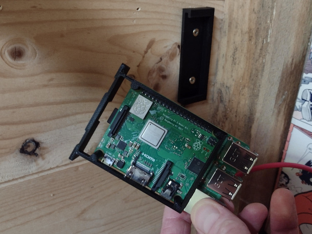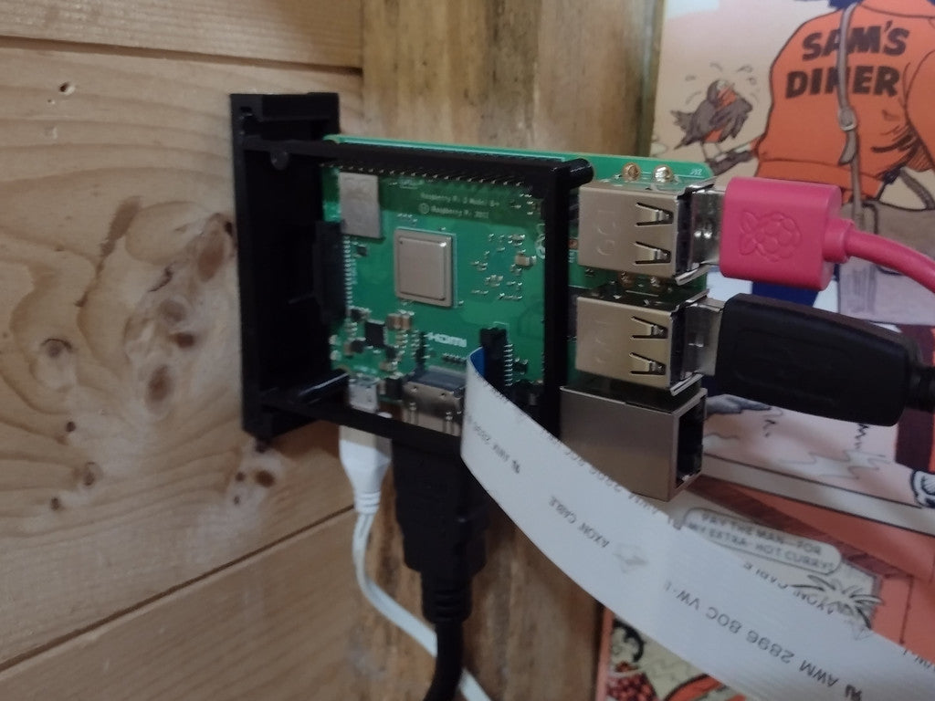 Simpelt vægbeslag til en Raspberry Pi, der kan monteres både lodret og vandret.